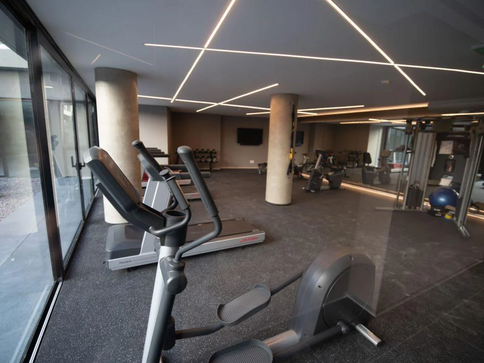 Gimnasio con equipamiento fitness y vestuarios
