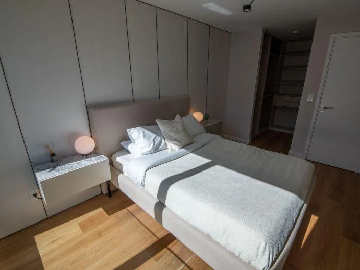 La zona de dormitorios incluye tres habitaciones y un baño completo, mientras que el dormitorio principal, con vestidor y baño en suite, brinda un toque de comodidad y estilo.