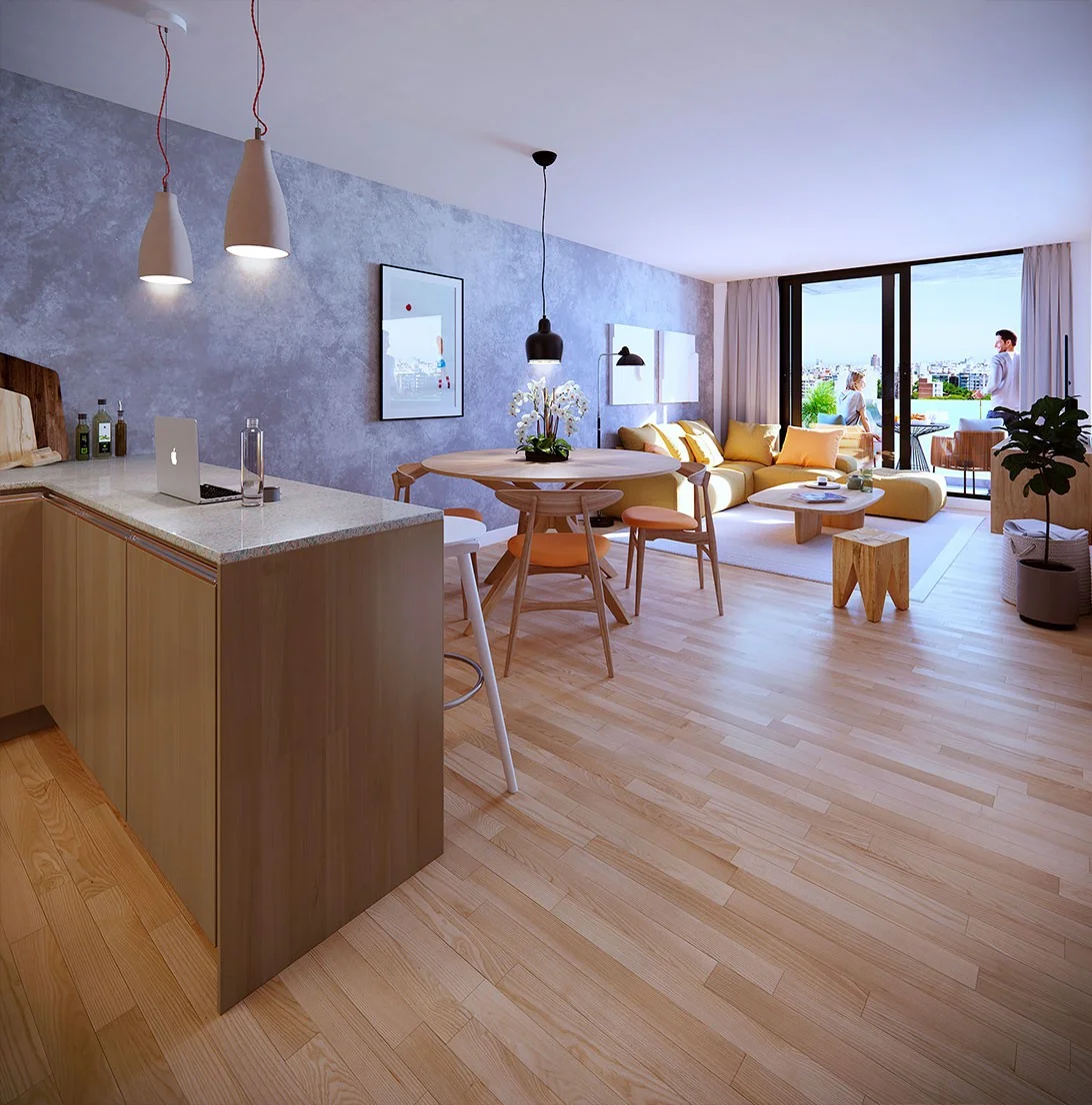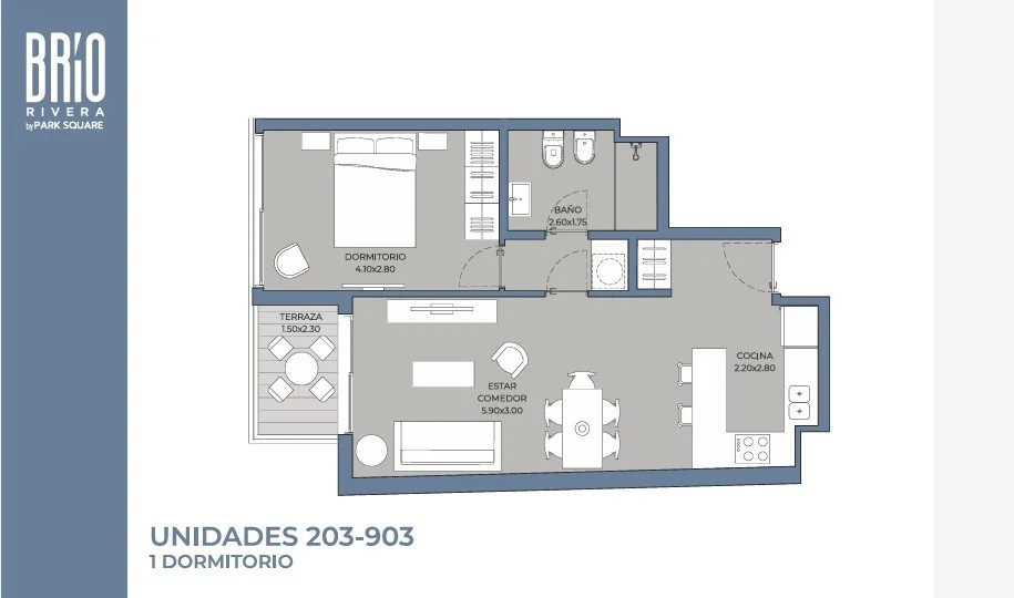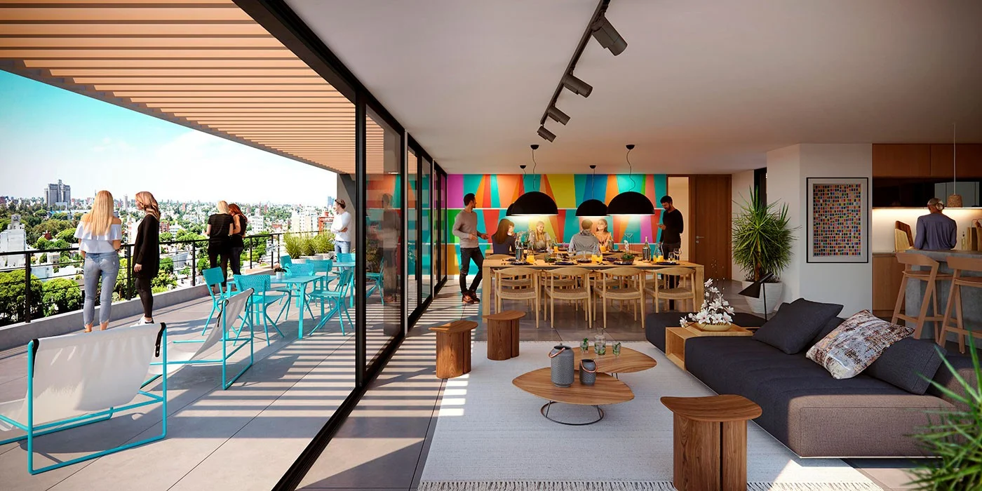ESTRENA FEBRERO 2027 Living comedor con terraza, cocina integrada, un dormitorio con placar y baño. Excelentes terminaciones Gran hall de ingreso Aberturas de alta prestación. Pisos importados Gimnasio Barbacoa con solarium 360 Lavandería Bicicletero Garajes opcionales