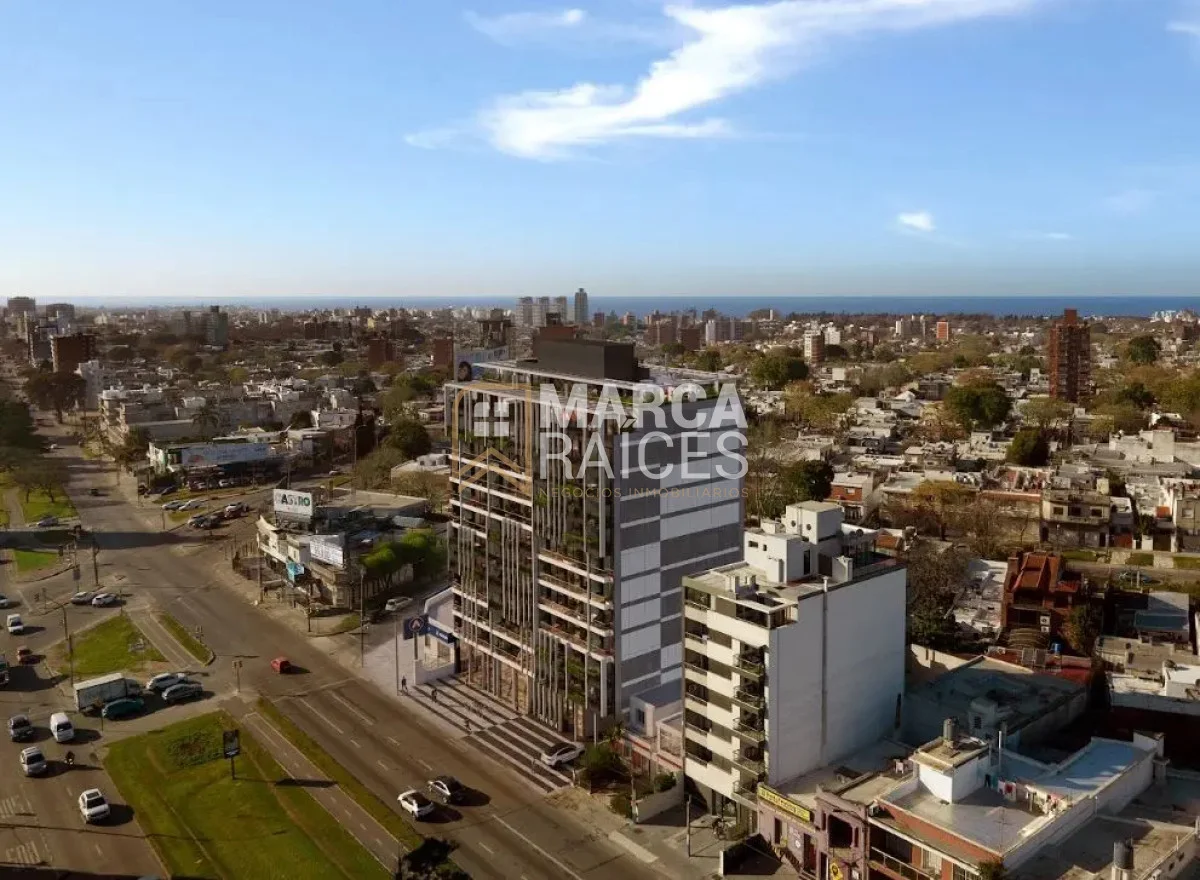 Rodeado de servicios, a pasos de hospitales, shoppings, centros educativos y el parque. Edificio moderno orientado al Norte con gran frente sobre la avenida, proyectado en 12 pisos con 10 unidades por piso.