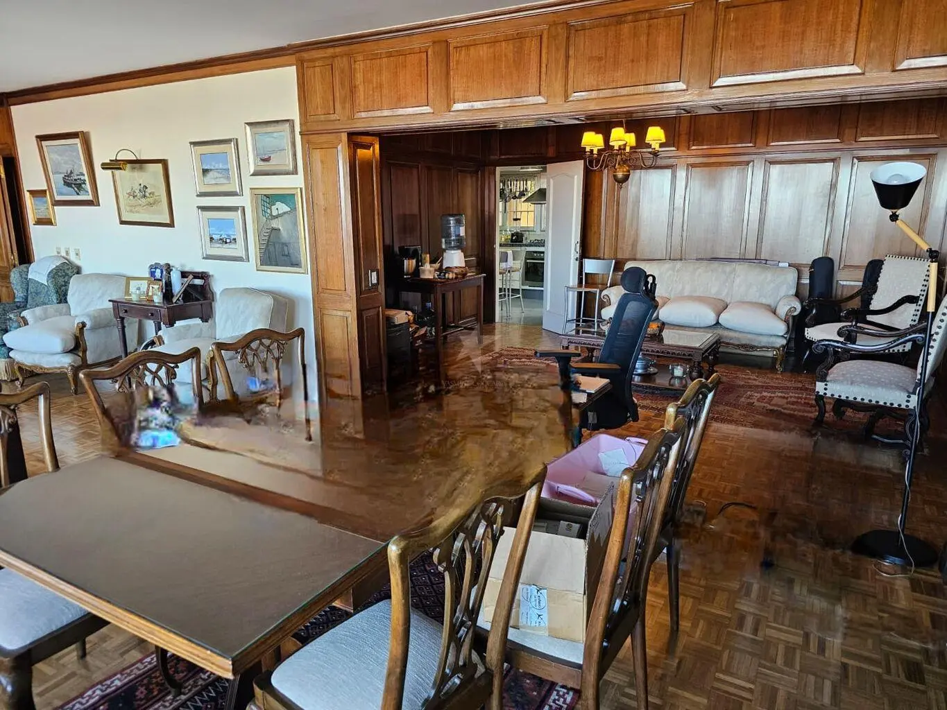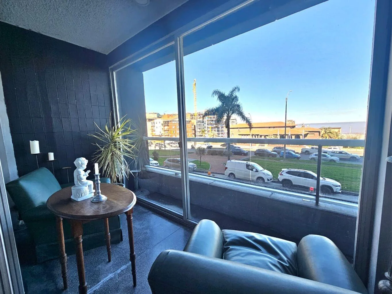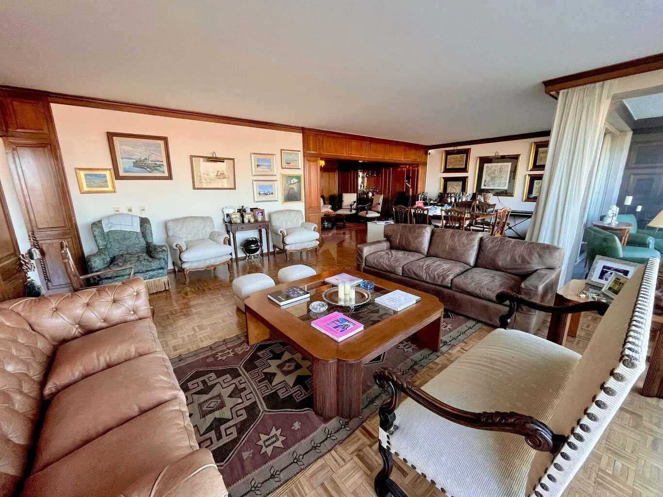 Recepción. Gran living comedor apaisado al frente con terraza cerrada y gran vista a la rambla. Doble ventana, todo piso de parquet y excelente carpintería.