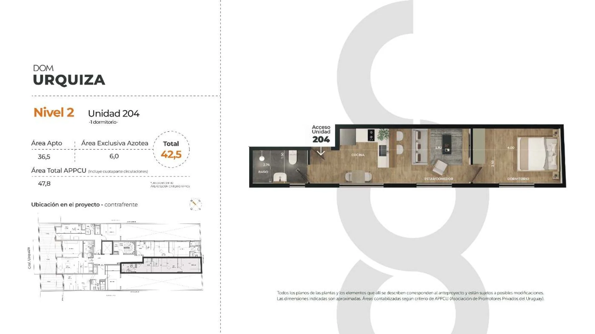 Corredor Responsable: - Contacto: Mónica Volkmann Bares VENTA EN POZO BARRIO LA BLANQUEADA UNIDAD NUMERO 204, CON ESPACIO EN AZOTEA DE USO EXCLUSIVO, ORIENTACION DEL FRENTE DEL EDIFICIO NOROESTE, DISPOSICION DE LA UNIDAD LATERAL, CONSTRUCCIÓN BAJO LEY DE VIVIENDA PROMOVIDA; GARAGES OPCIONALES La unidad publicada se trata de un apartamento de 1 dormitorio (unidad 204), ubicada en segundo piso, disposición lateral, con uso exclusivo de espacio en azotea (6 m2). Excelente proyecto de diseño que combina vida urbana y sustentable, desarrollado en 5 niveles, 24 apartamentos (tipología monoambientes, 1, 2 y 3 dormitorios), 12 lugares de estacionamiento, en una inmejorable ubicación en La Blanqueada, sobre Gral. Urquiza entre Estero Bellaco y Comandante Braga, con excelente conectividad, a metros de las principales avenidas y Shopping Tres Cruces y Nuevo Centro, zona en pleno crecimiento, amparado bajo la Ley de Vivienda Promovida, con las correspondientes exoneraciones tributarias de la Ley 18.795: -Exoneración ITP (2% sobre el valor Catastral) -Exoneración IRAE/IRPF sobre las rentas generadas de los alquileres por 10 años -Exoneración del Impuesto al Patrimonio FECHA DE ENTREGA: MAYO 2026 +5 niveles +24 apartamentos +12 sitios de estacionamiento +Tipología Frente, Contra Frente y Lateral +Azotea de uso exclusivo (asignadas a algunas unidades) +Rooftop con 2 barbacoas de uso común (una abierta y otra cerrada con parrilleros) +Sala de cowork +Garages opcionales en planta baja (consulte disponibilidad y precios) Forma de pago: 80% al firmar la promesa de compra venta y 20% contra la entrega; consulte por otras formas de pago Gastos de ocupación: 4% (no incluido en el precio) Gastos comunes estimados $3.500 mensuales Inmejorable ubicación, rodeado de variedad de servicios, muy buena conectividad y trasporte público a todas partes de la capital. Es una muy atractiva oportunidad para quien busca rentabilidad o su primer vivienda, a precios pre venta con descuentos lanzamiento! Dirección: Gral. Urquiza 2810, La Blanqueada, Montevideo Próximo a: +Parque Batlle +Universidad Católica +Instituto Crandon +Liceo Dámaso A. Larrañaga +Hospital Militar +Hospital de Clínicas +Casmu +Freshmarket COMPARTIMOS CON TODOS LOS COLEGAS COMISION INMOBILIARIA 3% MAS IVA SOBRE PRECIO DE VENTA Cada Oficina es de propiedad, gestión y desarrollo independiente La presente publicación describe las características esenciales del inmueble, debiéndose consultar al responsable de la operación por la eventual actualización de las medidas, descripciones arquitectónicas y funcionales, servicios, impuestos, precios y demás información, cuyos valores son aproximados.