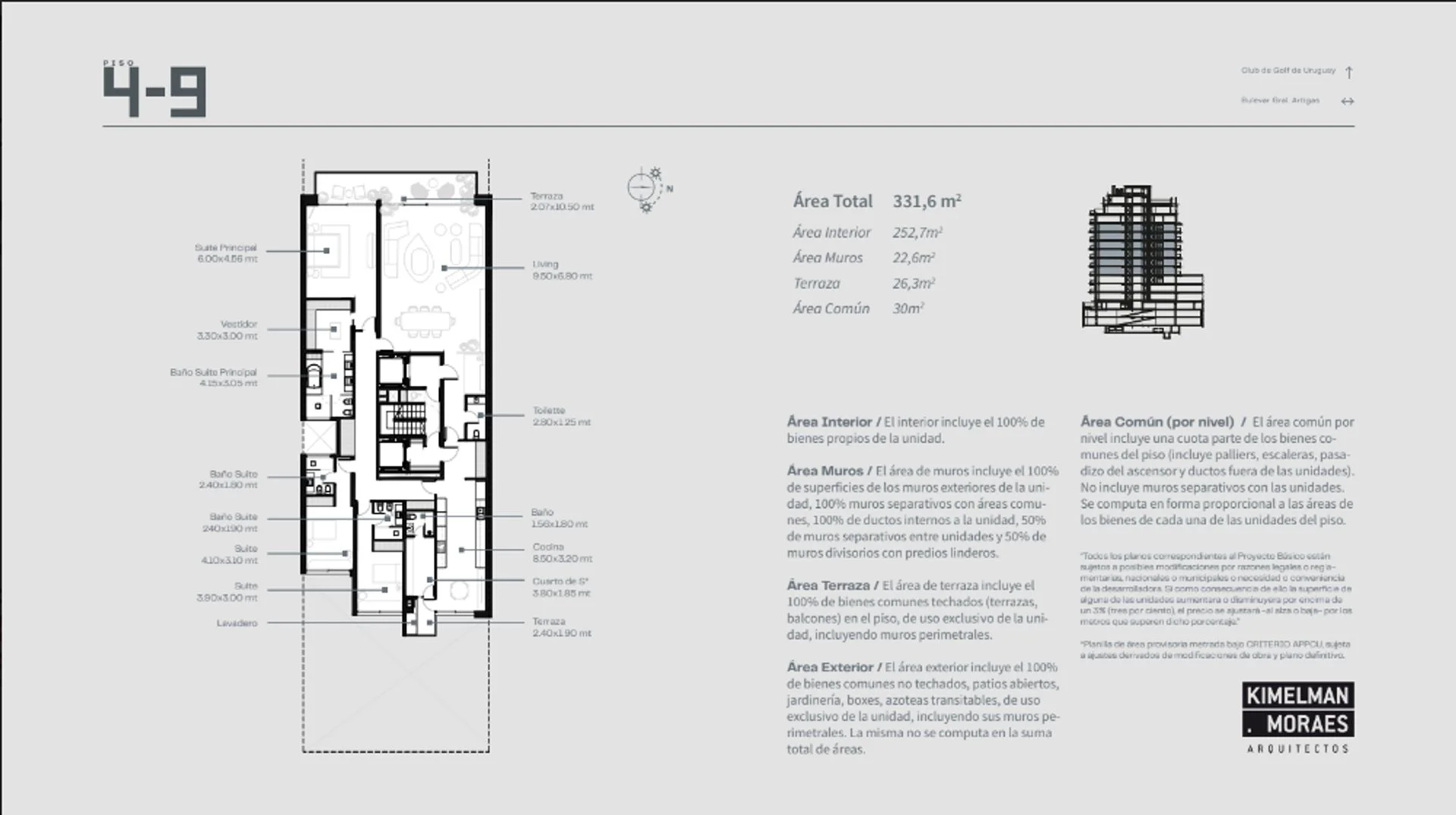 Corredor Responsable: - Contacto: Silvana De La Fuente SE VENDE EXCLUSIVO PROYECTO EN CONTRUCCIÓN SOBRE BV. ARTIGAS, FRENTE AL CLUB DE GOLF DE PUNTA CARRETAS. 234 Bulevar de Estudio Kimelman Moraes y Estudio Lecueder quienes presentan este nuevo edificio que redefine el concepto de funcionalidad y exclusividad en la zona. Se trata de 10 residencias únicas, incluyendo un increíble duplex, así como también un rooftop compartido, cada piso con las mejores vistas panorámicas hacia el entorno verde y la bahía. Opciones con parrillero y jardín en pisos bajos. En el piso 12 el Rooftop cuenta con un amplio mirador, barbacoa, sala gourmet, living con fogonero, yoga garden y solárium. Espacios cuidadosamente diseñados otorgando funcionalidad y confort para un estilo de vida único. Grupo Electrógeno Central telefónica con extensión a cada apartamento. Aires acondicionados con equipos VRF instaladas sobre el cielorraso distribuyen el aire mediante conductos. Calefacción por losa radiante Sistema Hidro Kit o Bomba de Calor. La seguridad es una premisa, contando con Portero eléctrico con sistema de video y sistema de monitoreo con los mas altos estándares. Domótica: Se entregan con la instalación en todos los ambientes, control de iluminación, cortinas, termostatos, con posibilidad de escalar en prestaciones de acuerdo a las necesidades del usuario. Materiales importados mayormente de Europa con finas terminaciones, Pisos de cuarzo o porcelánicos en living comedor, cocina, terrazas, y de madera de ingeniería de alta gama en dormitorios. Cielorrasos de hormigón visto. Aberturas DVH de excelente calidad. El precio de esta unidad corresponde a un 4to piso con amplia terraza. Hall de acceso a amplio living comedor con vistas panorámicas a la bahía y al golf. Toilette. Suite principal al frente con salida a terraza. Amplio vestidor. Dormitorios secundarios en suite, con placares. Cocina con muebles aéreos y bajo mesada, toda equipada con anafe, horno y microondas de empotrar, campana, lavavajillas y heladera panelable. Dormitorio de servicio con baño completo. Terraza lavadero. La unidad se destaca por sus vistas privilegiadas y sus finas terminaciones en alta calidad. Consulte por otras tipologías. Fecha de entrega prevista febrero 2026 Gastos de ocupación 4% Garajes simples U$S 30.000 y doble U$S 45.000 Dos subsuelos con espacios de guardado de vehículos y objetos personales. Baulera individual por apartamento Previsión para cargadores de autos eléctricos. Rampa con portón automático. No dejes de consultar para conocer un poco más sobre este proyecto único en la zona. Comisión inmobiliaria 3% más IVA. Cada Oficina es de propiedad, gestión y desarrollo independiente La presente publicación describe las características esenciales del inmueble, debiéndose consultar al responsable de la operación por la eventual actualización de las medidas, descripciones arquitectónicas y funcionales, servicios, impuestos, precios y demás información, cuyos valores son aproximados.
