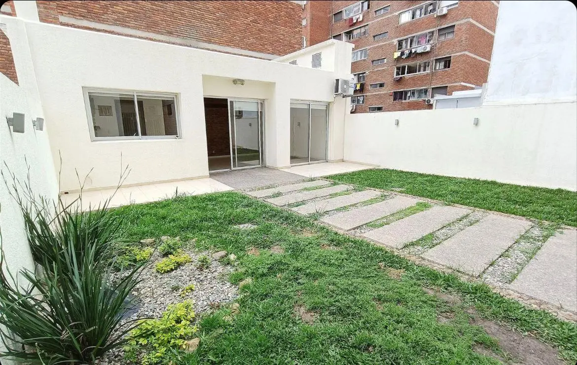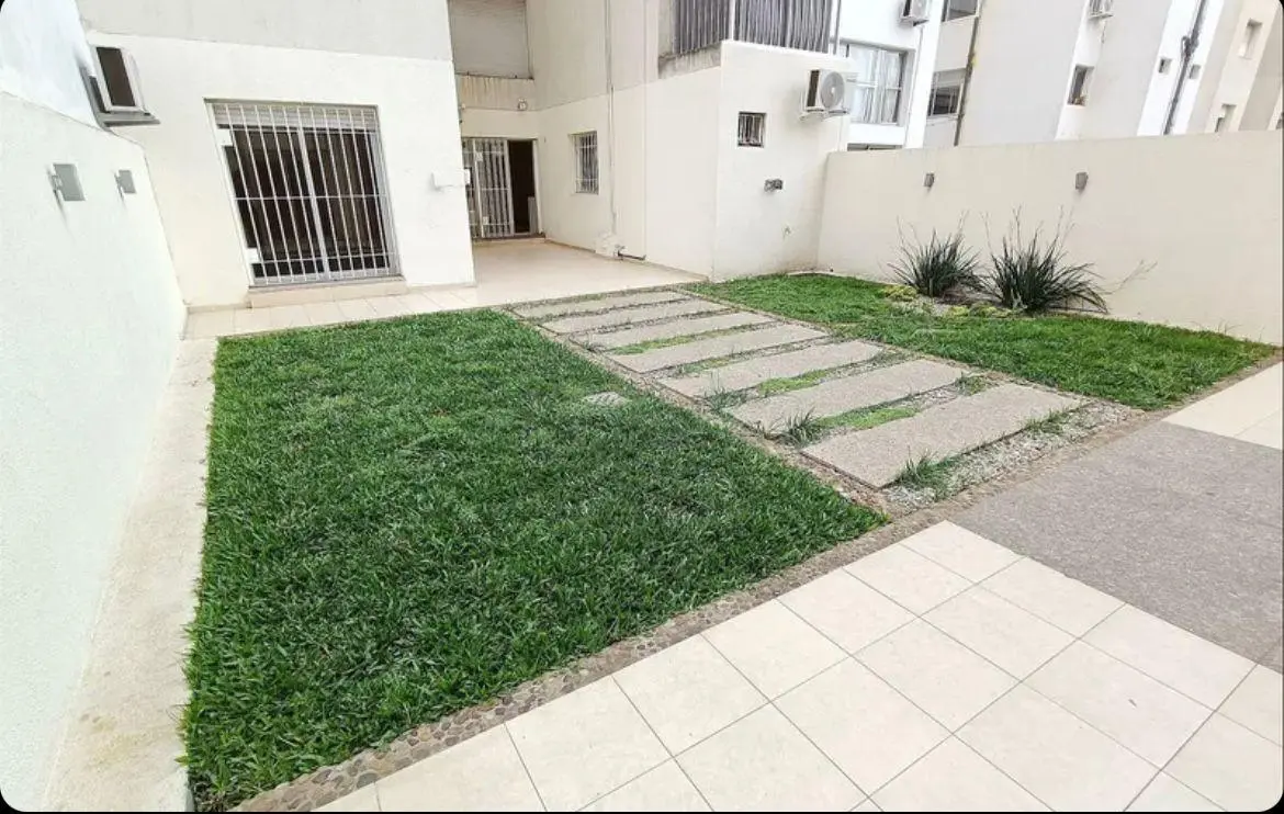 Apartamento tipo casa en primer piso con jardín y barbacoa.