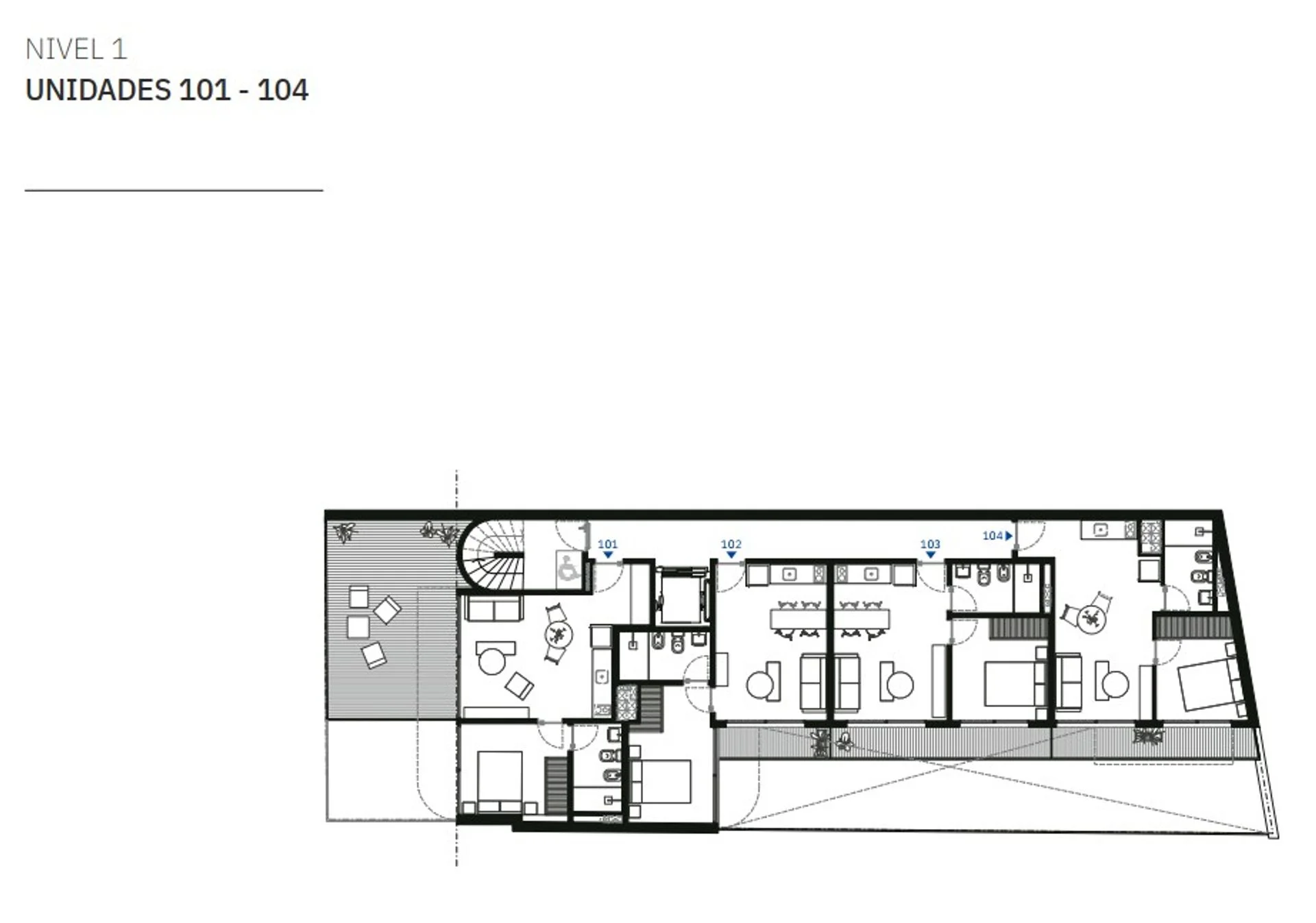 Corredor Responsable: - Contacto: Mariana Raffaglio Apartamentos construccion, precios promocionales, la obra esta en pozo, ubicada en Jaime Cibils y 8 de octubre, en el barrio La Blanqueada, Montevideo. El edificio cuenta con 20 unidades de un dormitorio y 10 cocheras. El precio corresponde a la unidad 102. (1er piso), orientación este, terraza de uso exclusivo, living, cocina integrada y equipada, conexión para lavarropas y para aire acondicionado. Baño completo. En nivel 6 se ubica el solarium, baño social y SUM con parrillero exterior e interior. Proyecto rodeado de centros educativos, también de centros de Salud, próximo a terminal Tres Cruces y Parque Batlle. Garajes disponibles U$S 21.000. Proyecto amparado bajo la Ley de Vivienda Promovida. - Exoneración de IVA: Sobre los ingresos derivados de la construcción, refacción y ampliación de viviendas. - Exoneración del Impuesto al Patrimonio: Por 10 años sobre los activos afectados a la construcción. - Exoneración de IRPF o IRAE: Por 10 años sobre las rentas generadas por el alquiler de la propiedad. . Gastos de conexión 4%. Entrega Marzo 2027. Cada Oficina es de propiedad, gestión y desarrollo independiente La presente publicación describe las características esenciales del inmueble, debiéndose consultar al responsable de la operación por la eventual actualización de las medidas, descripciones arquitectónicas y funcionales, servicios, impuestos, precios y demás información, cuyos valores son aproximados.