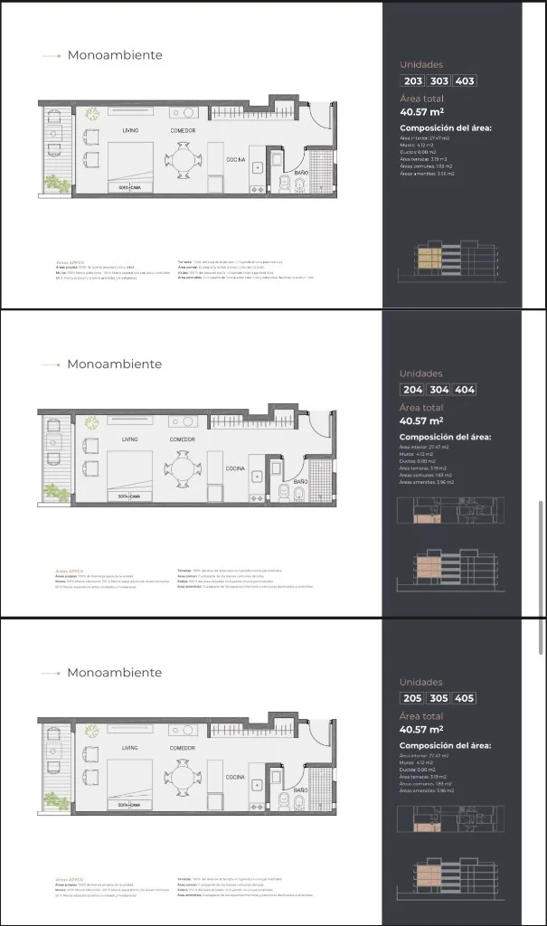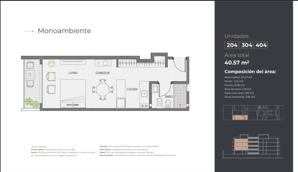 Monoambientes – Modernos y funcionales, desde 32 m² totales con terraza.
