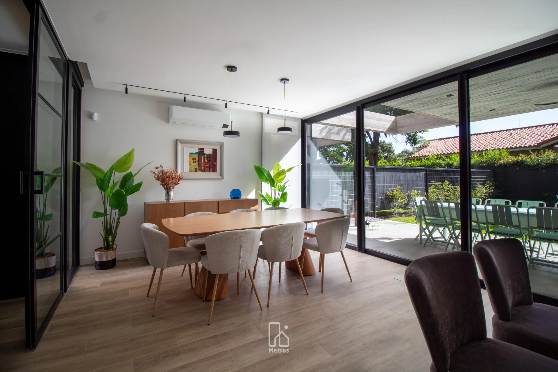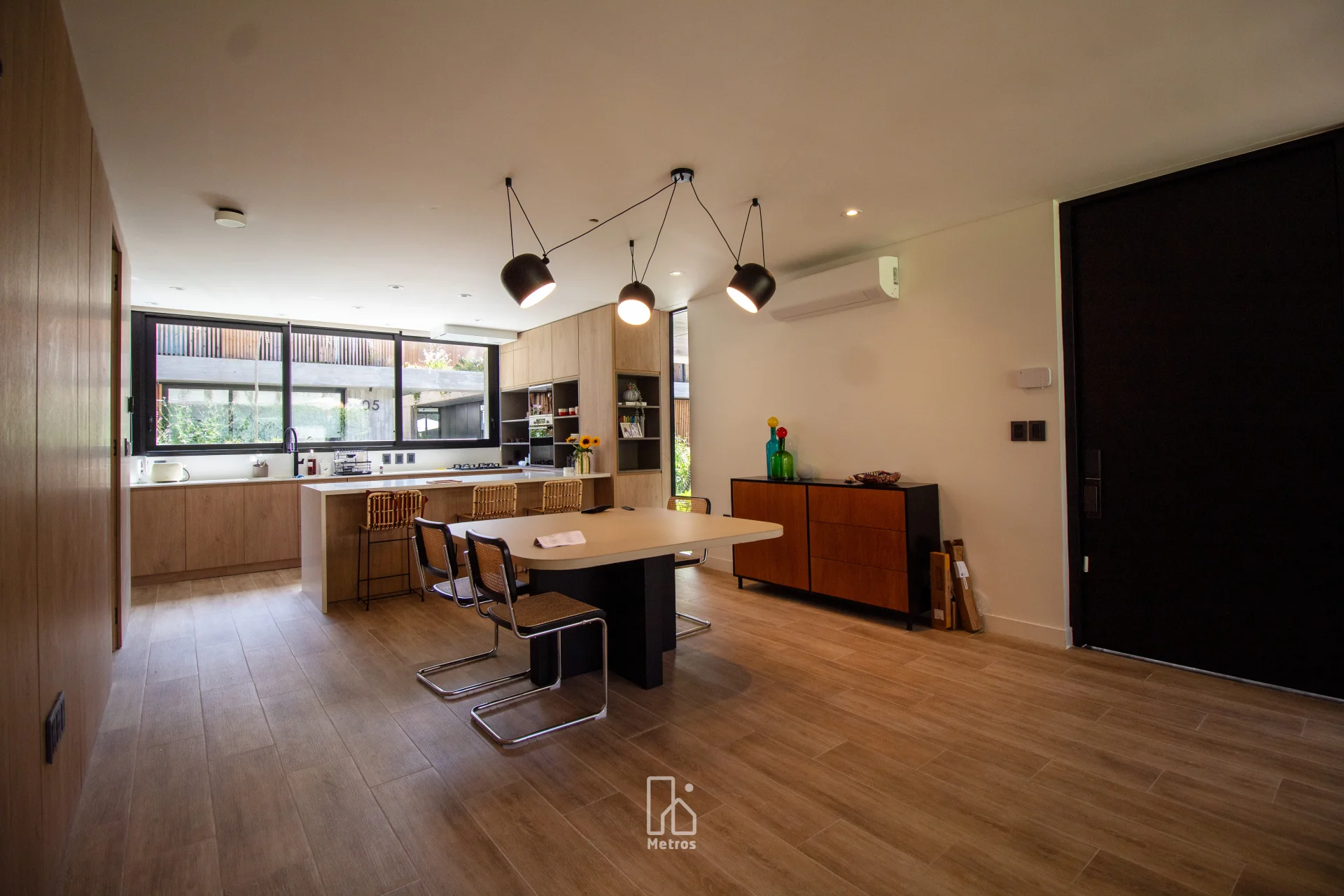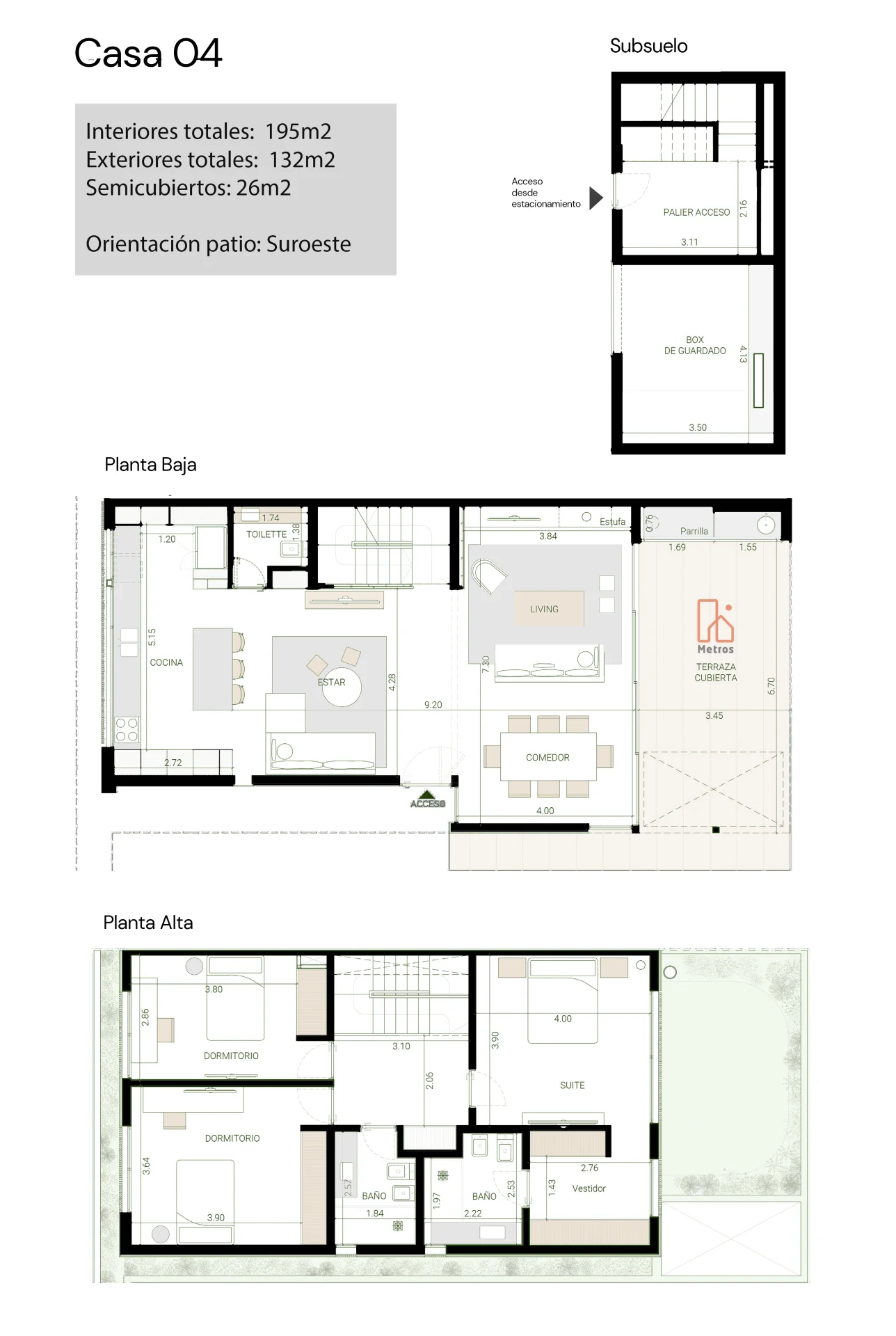 ¡A estrenar HOY! DESTACAMOS Gran Área Social: Living + Estar con estufa tradicional • A estrenar • Divino Punto de Carrasco Sur • 3 baños • Enorme Cocina integrada con barra americana • Parrillero • Box • 2 garajes incluido en precio • Piscina climatizada • Lavadero • Seguridad • Lindo Paisajismo • Acceso independiente desde el garaje del subsuelo LA ZONA Ubicada en una calle tranquila y arbolada de Carrasco Sur, esta propiedad se encuentra en un punto estratégico del barrio. A solo dos cuadras de Arocena, ofrece acceso inmediato a una amplia oferta de servicios, gastronomía, cafés y comercios. Además, se encuentra a pocas cuadras del Lawn Tennis y del centro de Arocena con todos los servicios esenciales que facilitan la vida diaria. Cercano a los principales colegios de Carrasco, ideal para familias que buscan comodidad y rapidez en los traslados. El entorno combina perfectamente movilidad, servicios y tranquilidad, ofreciendo un estilo de vida práctico y agradable en uno de los sectores más valorados de Carrasco. EL COMPLEJO - H Proyecto residencial de 12 casas, cada una con su propio acceso y estacionamiento privado en el subsuelo, sin circulación de autos en los jardines comunes, asegurando comodidad y seguridad para los residentes. Seguridad Virtual con monitoreo 24hs para ti tranquilidad. Piscina climatizada para poder usarla incluso en días fríos! Viviendas con un diseño arquitectónico contemporáneo,destacan por el uso de materiales naturales, amplias ventanas que permiten una iluminación natural óptima y vistas despejadas. El corte de césped propio y el mantenimiento del cerco están incluidos en los gastos comunes, lo que simplifica por completo la gestión del jardín. AMBIENTES Living comedor • Estar • Cocina integrada • 3 Baños • 3 dormitorios • Dormitorio en suite • 2 cocheras • Lavadero • Box • Vestidor • Parrillero • Jardín LA CASA La casa se desarrolla en dos plantas + subsuelo, con 195m² interiores y 132m² exteriores. Su diseño se destaca por los techos altos, la carpintería en madera en todos los ambientes y la sensación de amplitud y fluidez en todos los espacios. En planta baja, un gran living comedor con estufa tradicional y ventanales de piso a techo que aseguran una excelente iluminación natural Orientación Este. Desde aquí se accede directamente al jardín con parrillero, un espacio ideal para disfrutar en familia o con amigos. La cocina integrada al estar comedor mediante una isla americana combina diseño y funcionalidad, equipada con electrodomésticos Samsung (horno, anafe y extractor). En este nivel también se ubica un toilette. Escalera iluminada naturalmente gracias a un tragaluz. En el segundo nivel encontramos un hall de distribución con placard de guardado, que conecta todos los ambientes. Se desarrollan 2 dormitorios amplios, ambos con espacio para escritorio, acompañados por un baño completo. El dormitorio principal en suite destaca por su gran vestidor y un baño de excelentes dimensiones. La casa cuenta con calefacción por bomba de calor y aires multisplit ya colocados. En el subsuelo un palier con entrada independiente, depósito / box de guardado y un gran ambiente adicional que puede funcionar como playroom, estar o área de trabajo. 2 Garajes independientes. Riego con sistema programado, que optimiza el cuidado del verde y asegura un mantenimiento eficiente durante todo el año. El precio no incluye gastos por conexiones. Gastos comunes: $19.500 Comisión Inmobiliaria: 3% + IVA
