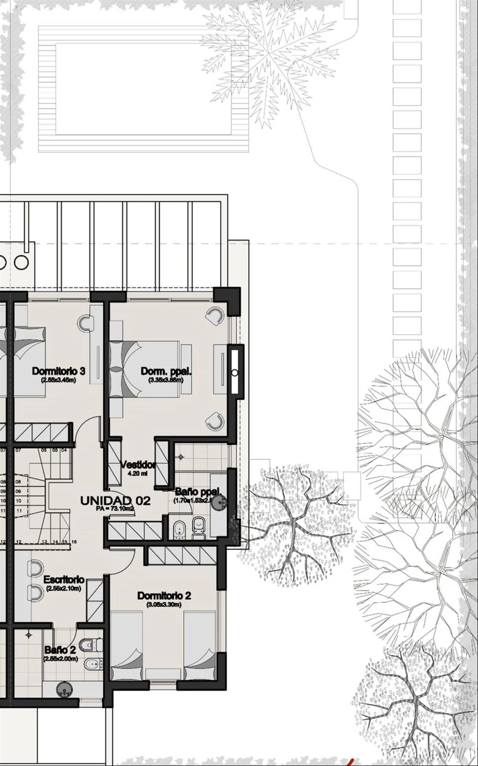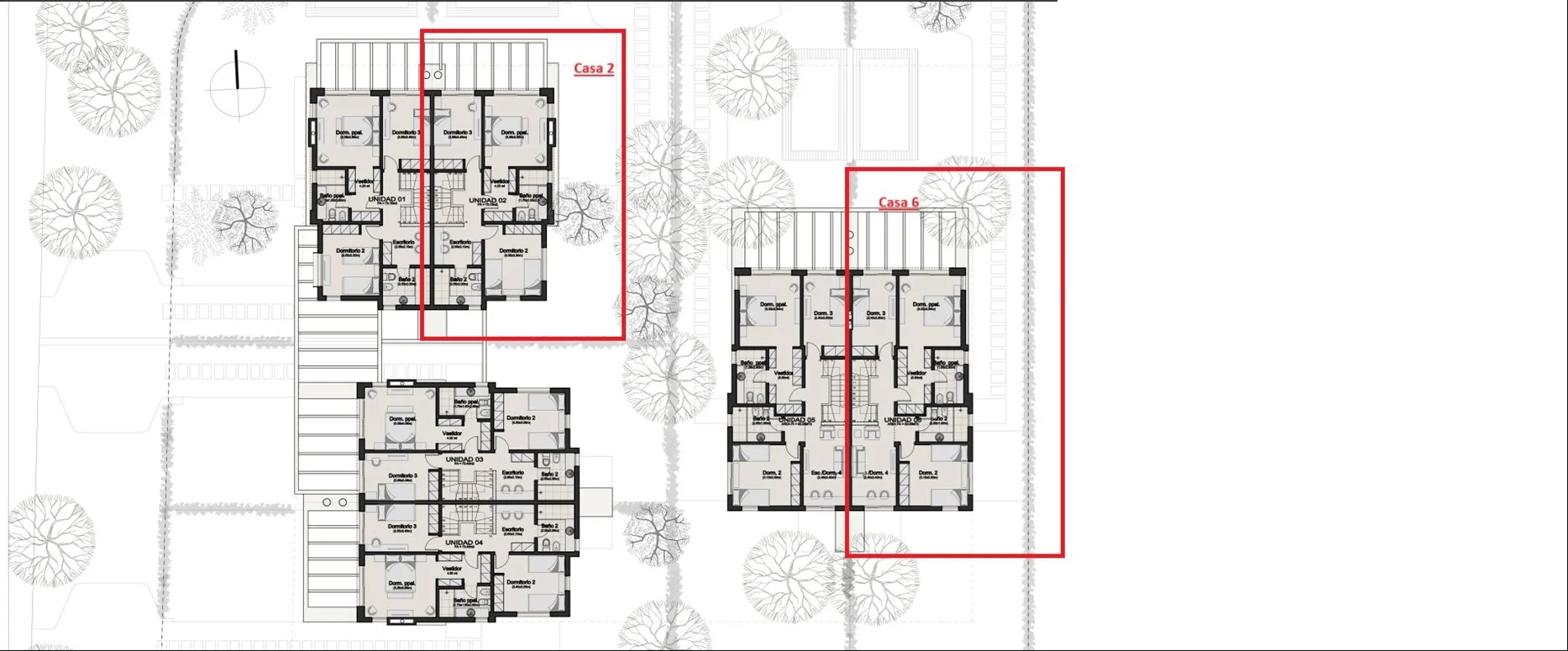 Son 6 casas de 3 dormitorios + escritorio o 4 dormitorios diseñadas en pares de PH caracterizadas por la luminosidad producto de la excelente orientación, todas con ingreso independiente y ubicadas en uno de los terrenos mas altos de Parques II generando vistas únicas. al igual que TIMBO contara con la calidad de la construcción y el diseño de JDVA.