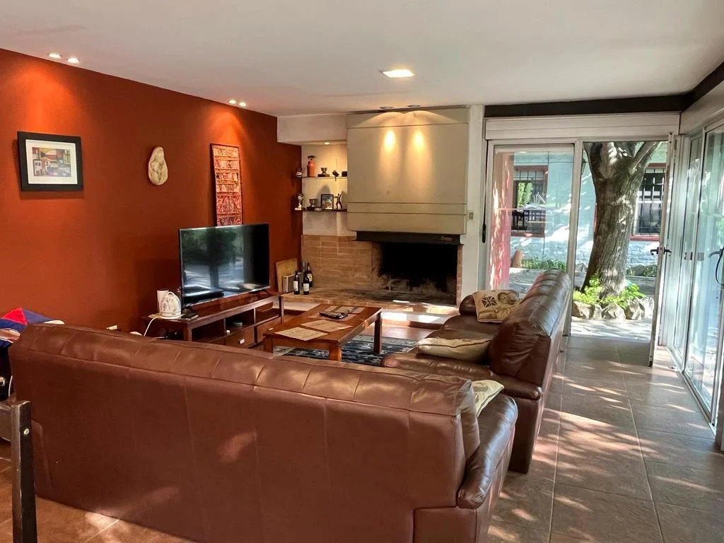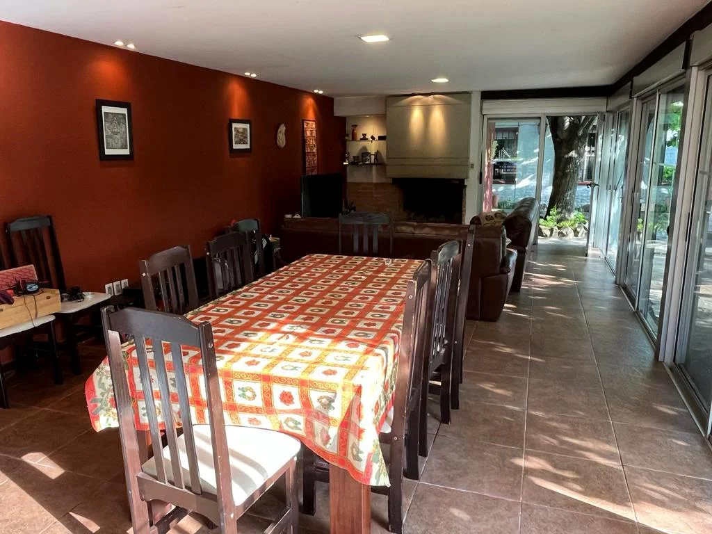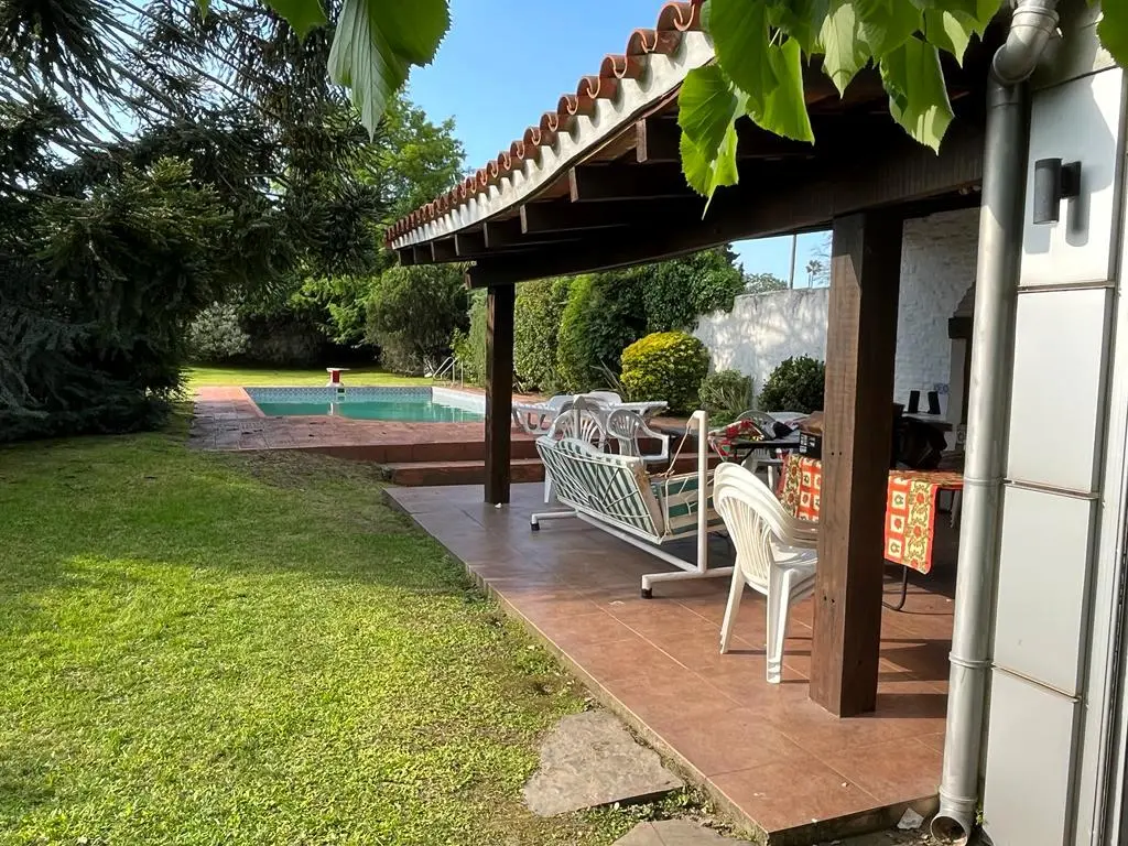 La barbacoa es muy amplia y tiene estufa a leña y un baño social. Se continua con una terraza techada con parrillero.