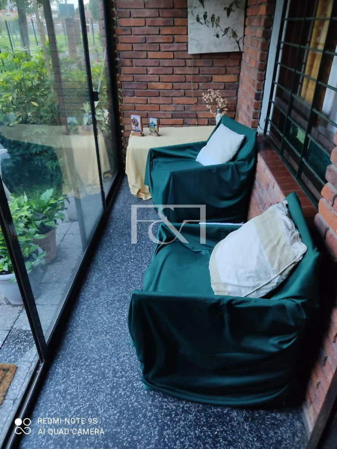 Cochera y amplio salón con parrillero.