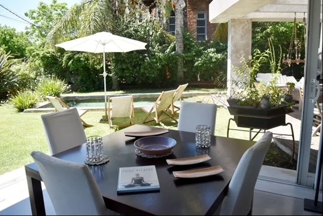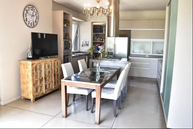 La distribución de la vivienda es sumamente funcional, incluyendo una cocina comedor ideal para compartir momentos, un comedor separado, un acogedor estar y un práctico escritorio. Además, dispone de dormitorio y baño de servicio, lavadero y un toilette. El exterior es un verdadero paraíso, con una amplia barbacoa perfecta para reuniones sociales, una refrescante piscina para los días de calor y una terraza con vistas interesantes. El patio y el fondo brindan espacios al aire libre para disfrutar del entorno. La propiedad cuenta con placares empotrados, cochera para 4 vehículos y calefacción por losa radiante. Se acepta la presencia de mascotas y todos los papeles se encuentran en regla.