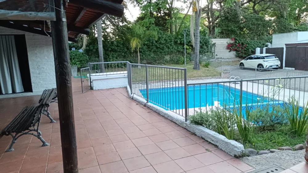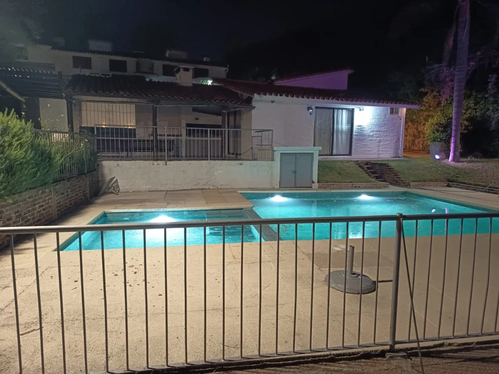 Gran estar o sala de juegos con salida a hermoso patio con parrillero. Cuenta con cochera, vigilancia, piscina, barbacoa y espacio verde con juegos para niños.