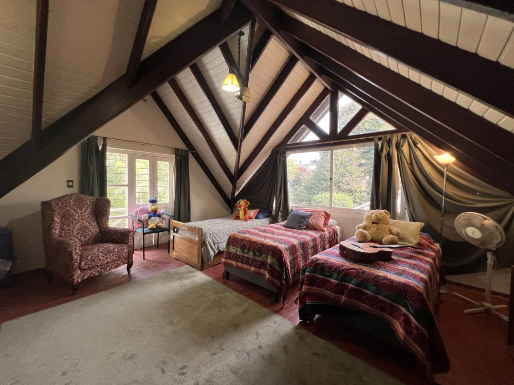 En planta alta se encuentra un espacioso estar o sala de juegos, junto a un dormitorio de generosas dimensiones, con ventanales y salida a terraza con vistas al parque.