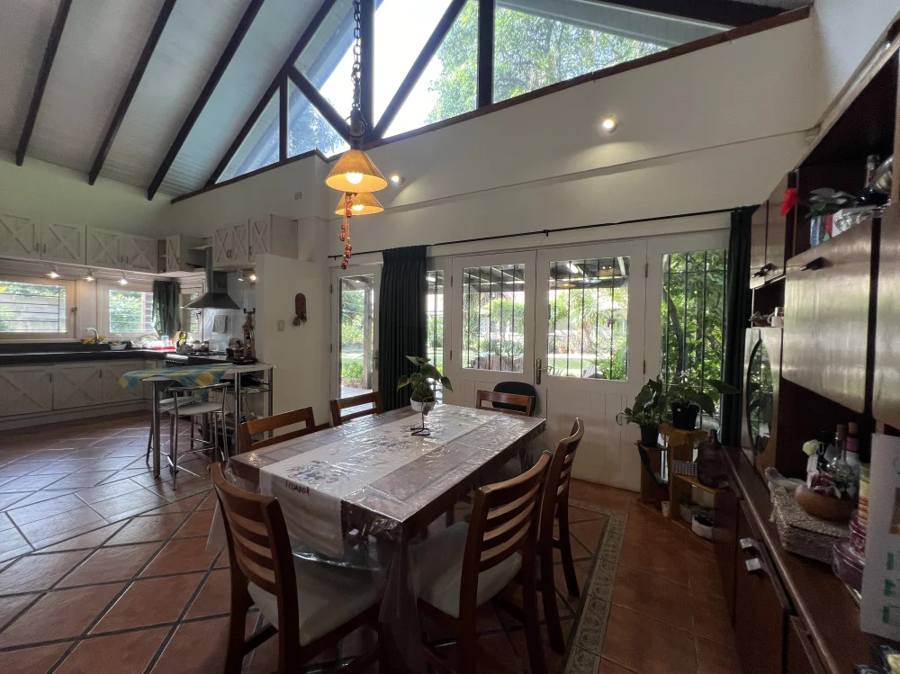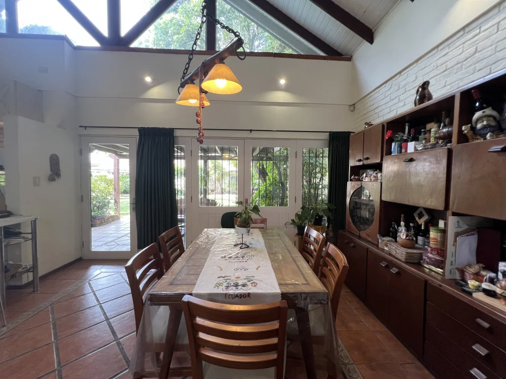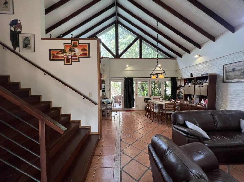 Casa principal de estilo campo desarrollada en dos niveles, con la mayor parte de sus ambientes en planta baja. Cuenta con un amplio living-comedor con hogar, integrado a cocina americana de buenas dimensiones. Dispone de 4 dormitorios con placares y 2 baños completos en este sector.