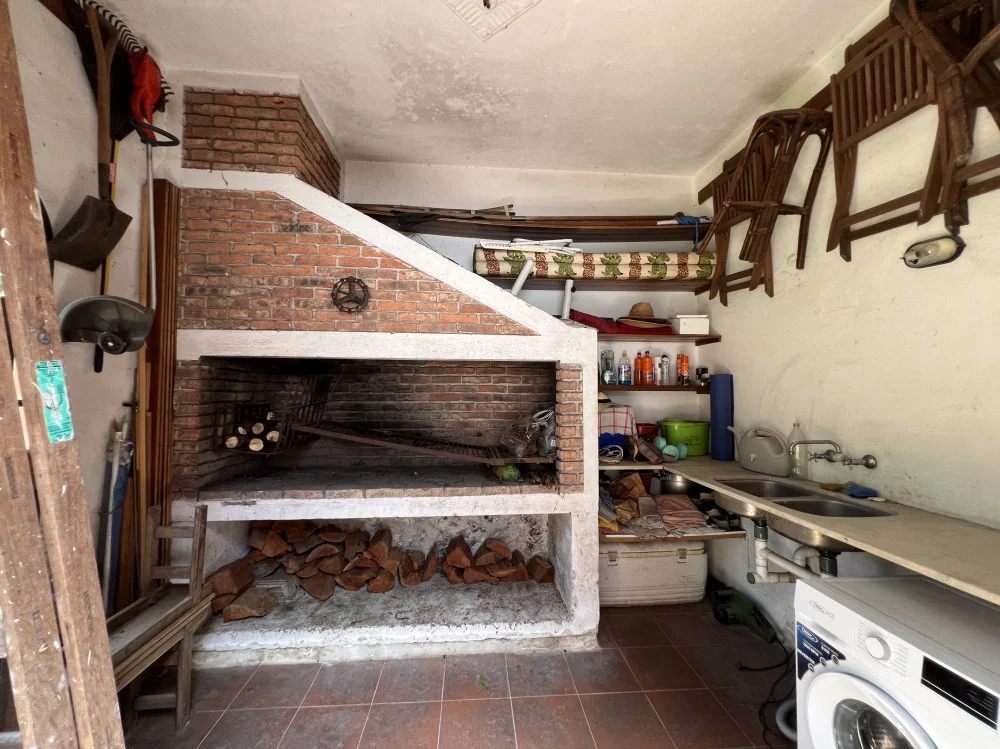 El fondo parquizado ofrece un espacio disfrutable y privado, con pequeña barbacoa, ideal para reuniones y actividades al aire libre.