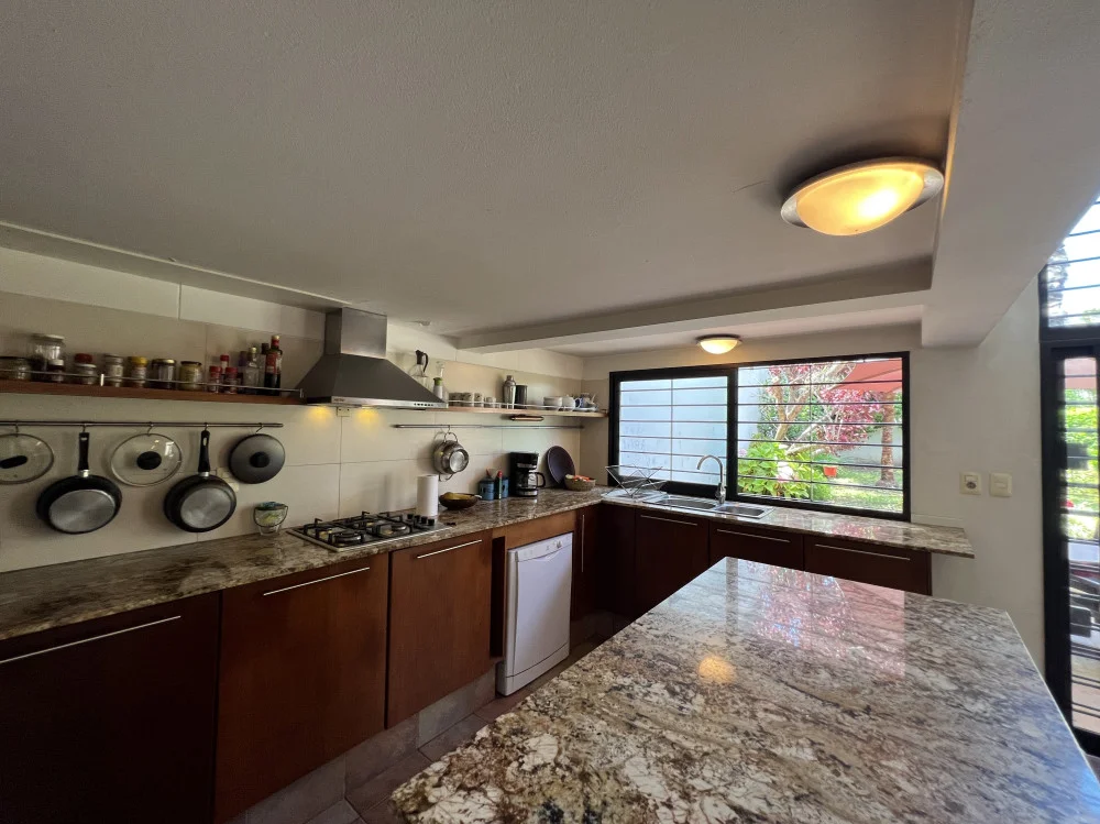Al ingresar, una amplia recepción con ventanales al frente aporta calidez y carácter. Luego se integra un estar con claraboya, que brinda luz natural durante todo el día. Desde allí se accede a una galería que conecta con un hermoso patio interior, funcionando como un pulmón verde que ilumina y ventila los ambientes centrales.