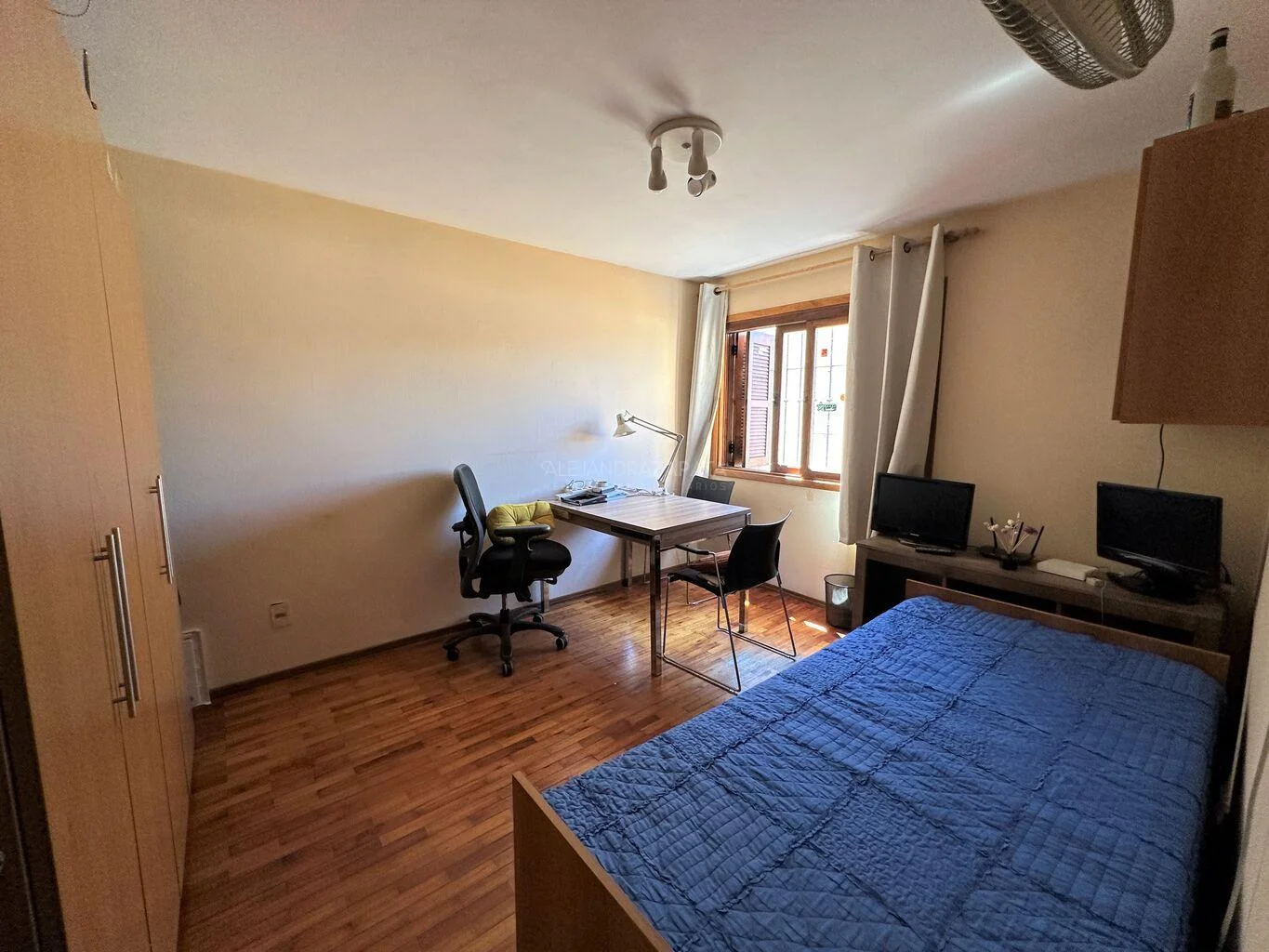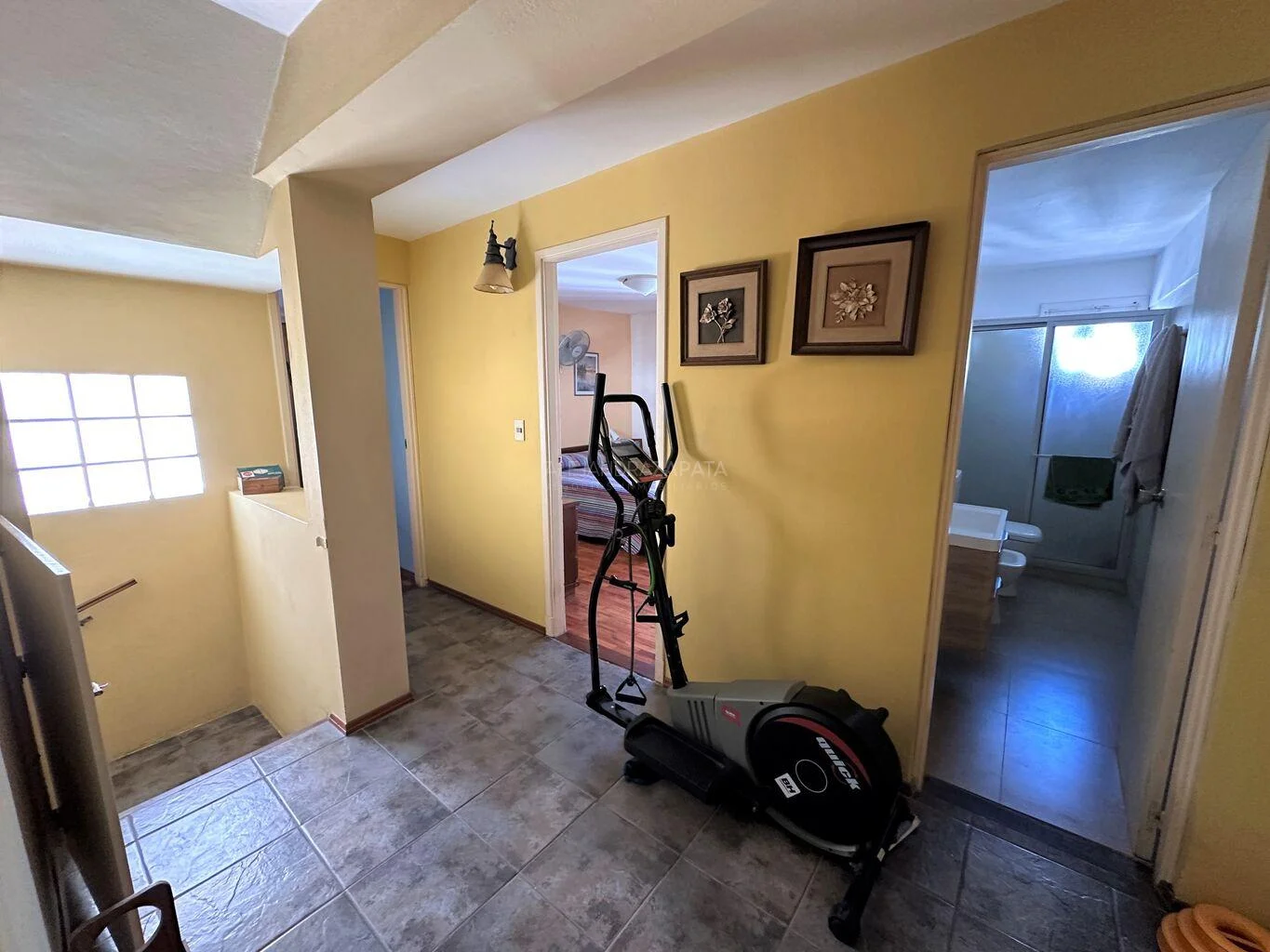 En planta alta, un hall de distribución luminoso conecta los tres dormitorios, todos con placares, ventanales de madera, postigones y rejas. Aquí también se encuentra el segundo baño completo, recientemente reciclado, con ventilación y luz natural.