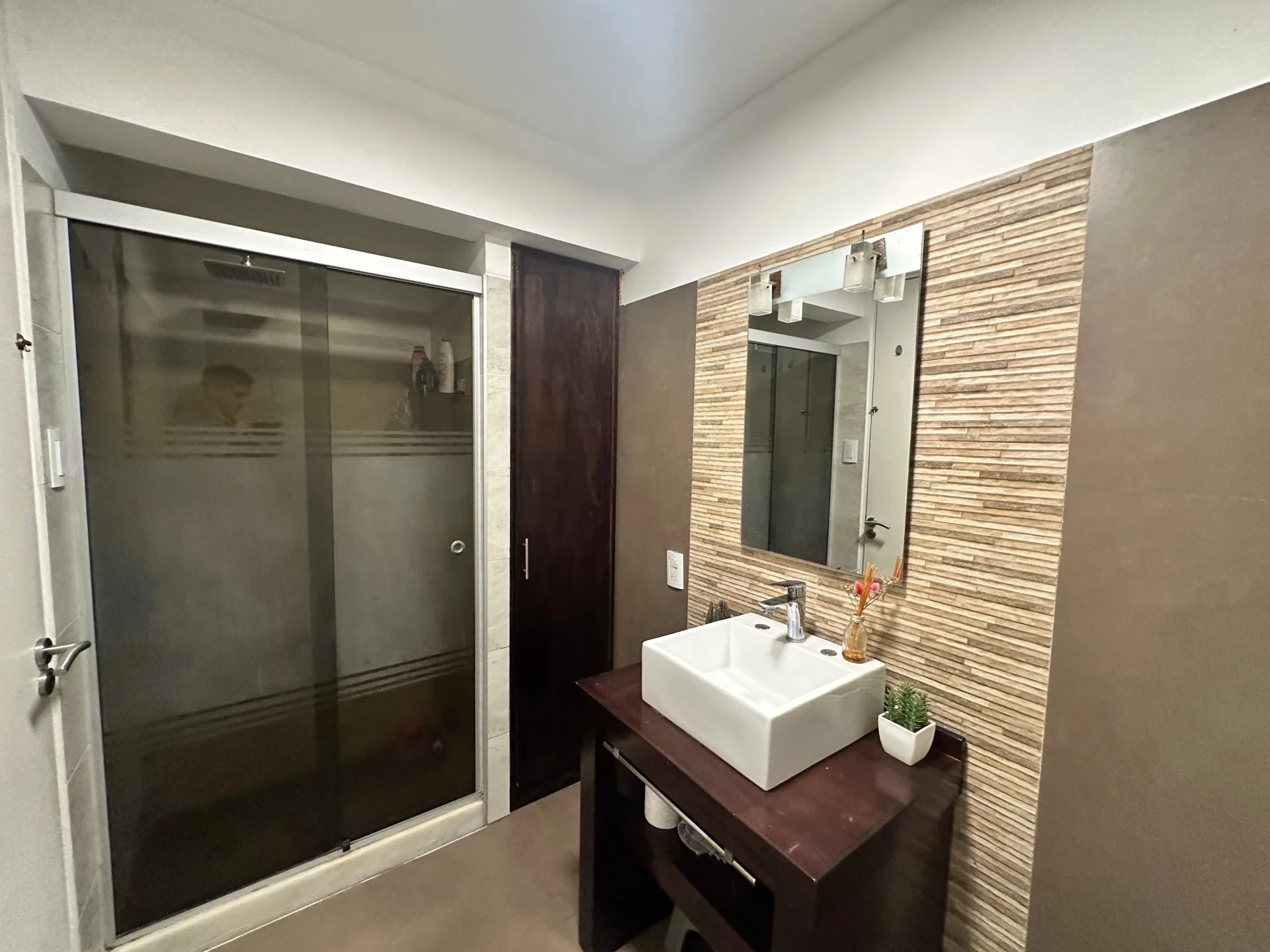 El área exterior es uno de los grandes atractivos de la propiedad, ofreciendo un jardín privado con parrillero techado. Este espacio está pensado para el disfrute social y familiar durante todo el año, funcionando como una extensión del hogar en un entorno seguro y despejado. La calidad de los materiales utilizados en la reforma garantiza durabilidad y un bajo mantenimiento a futuro.