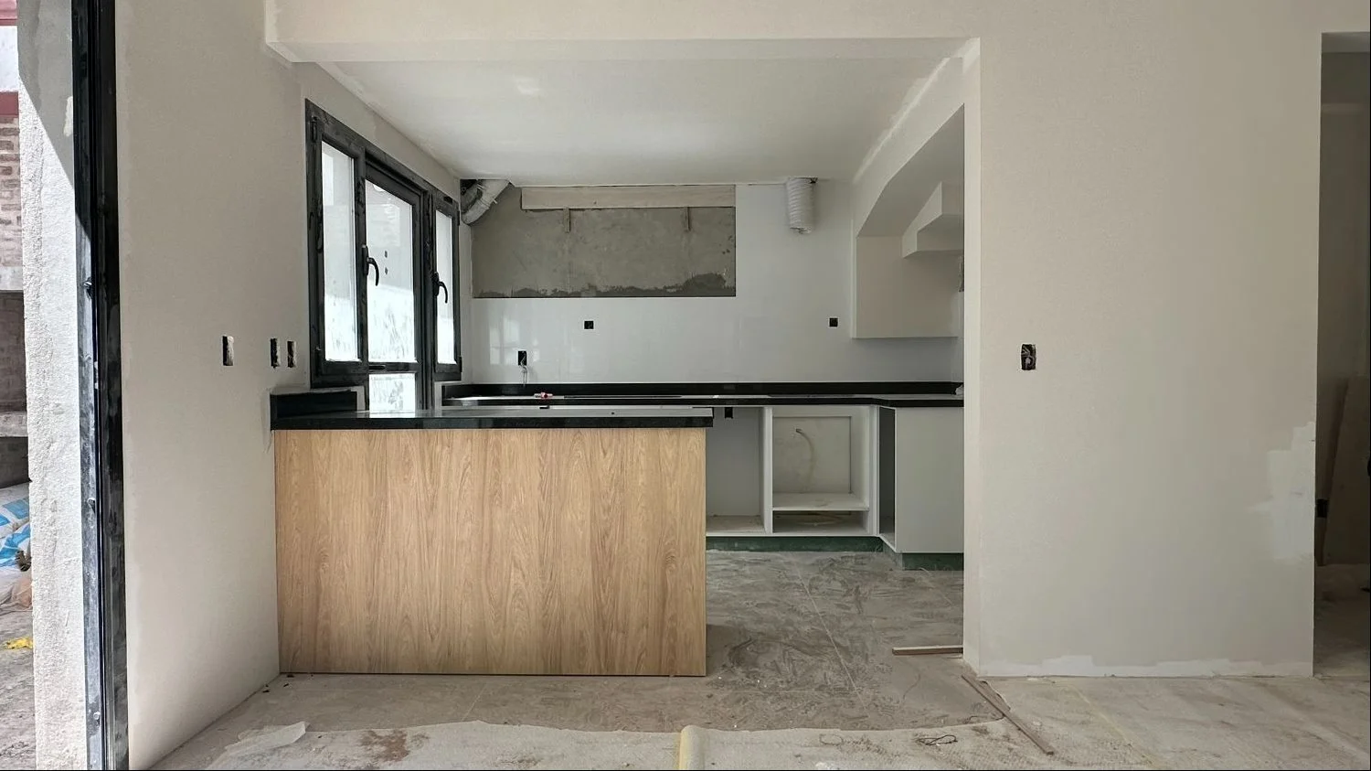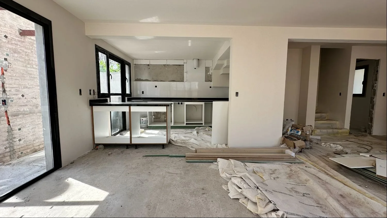 Living comedor con estufa de alto rendimiento y salida a jardín con parrillero y pergola. Cocina semi integrada con barra, equipada con horno, anafe y campana, y salida a terraza lavadero.