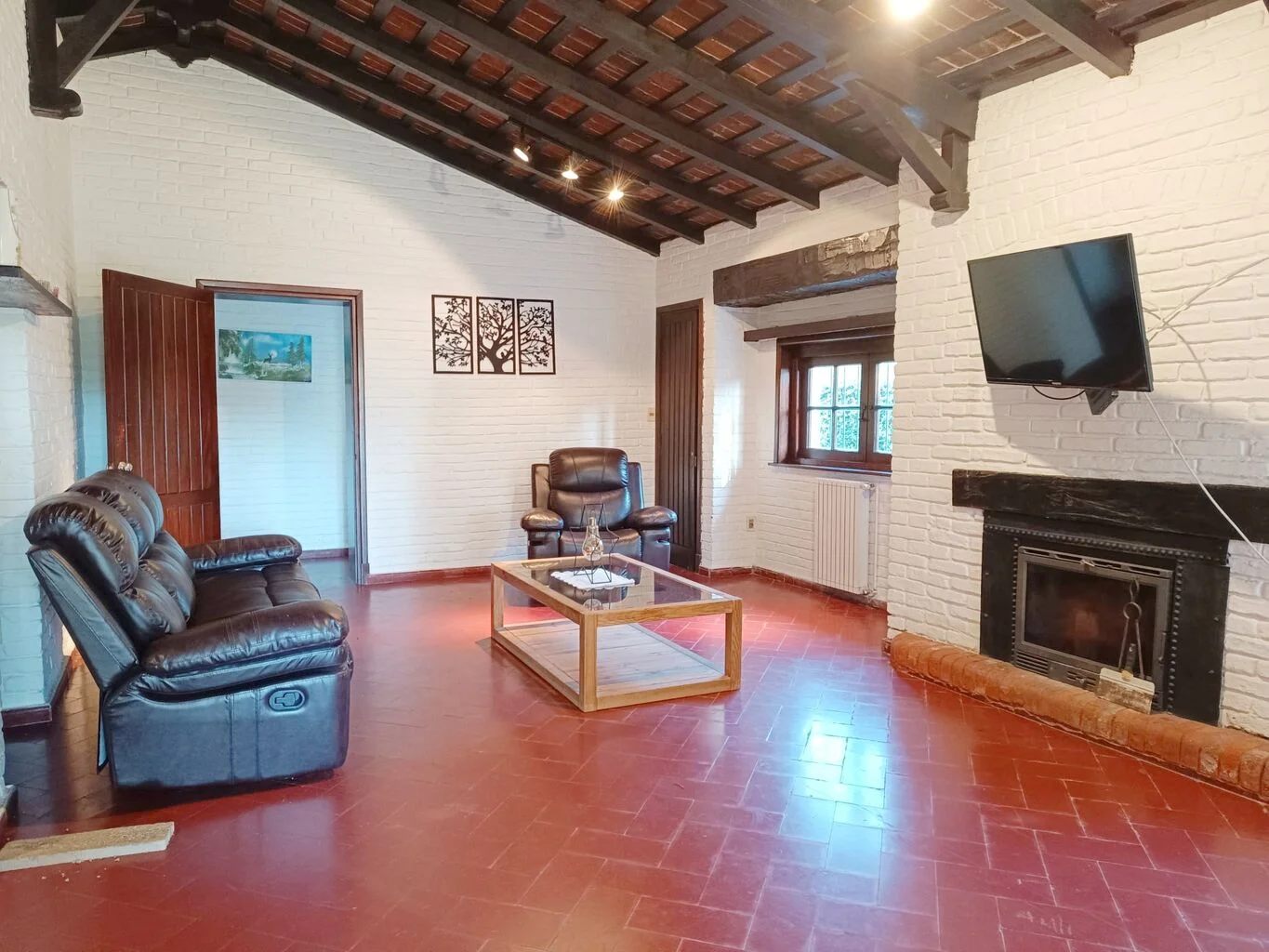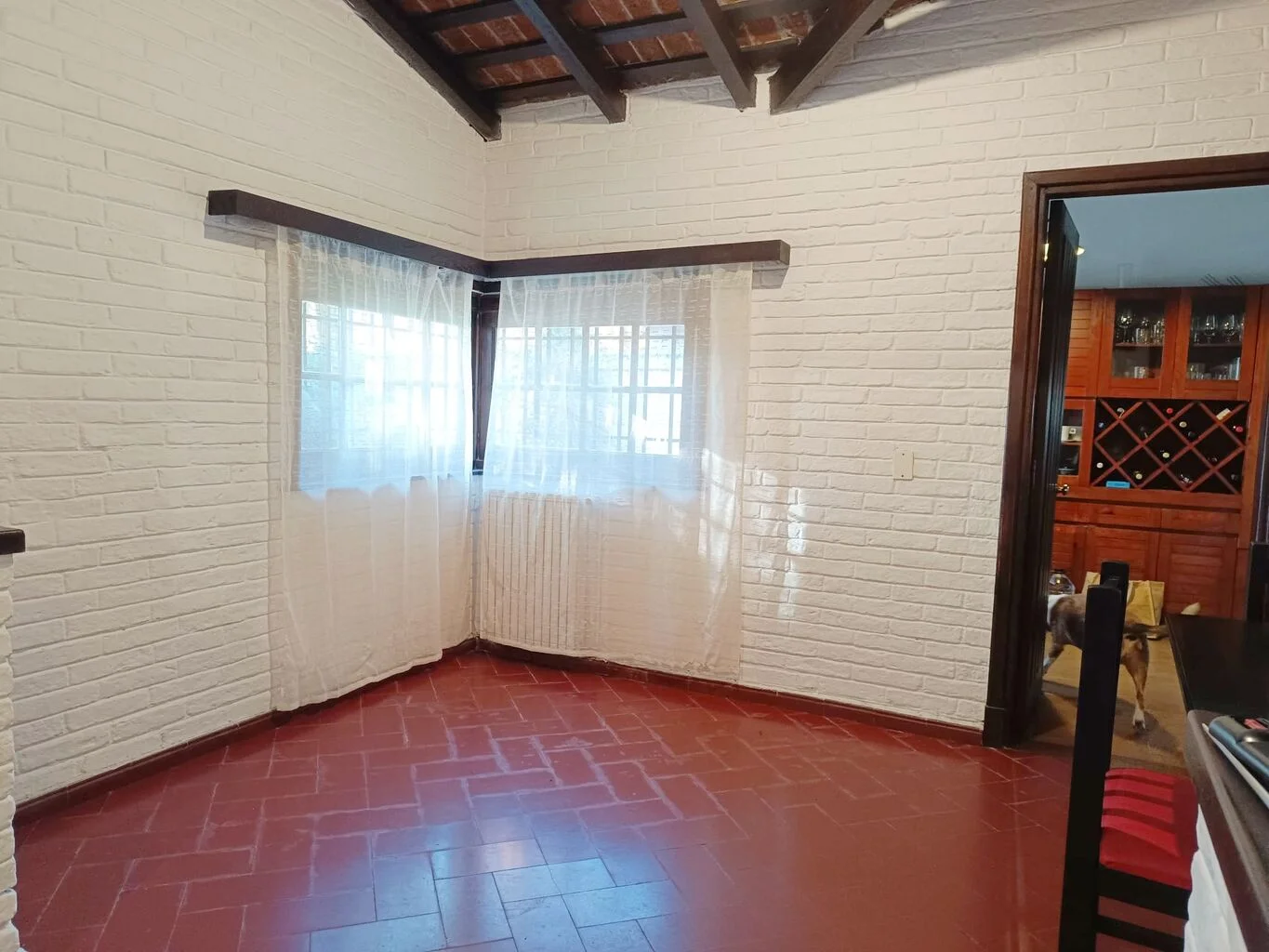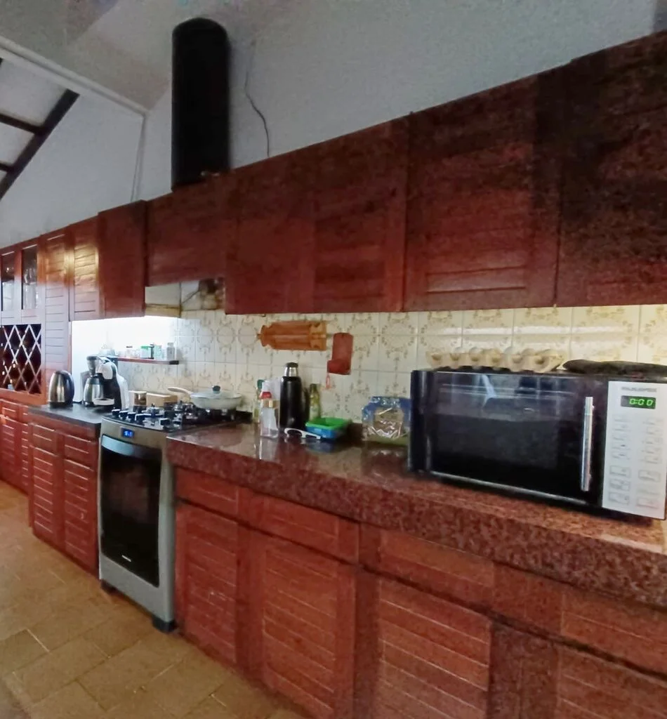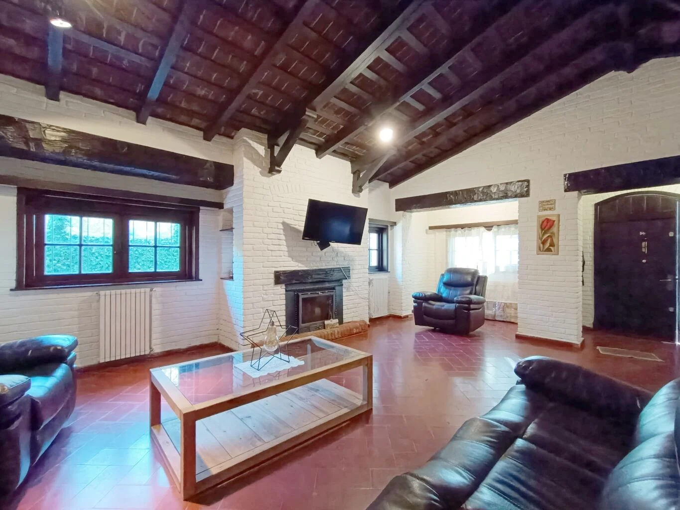 Amplio living con estufa a leña, comedor, cocina definida con doble mesada con muy buena carpintería, despensa.