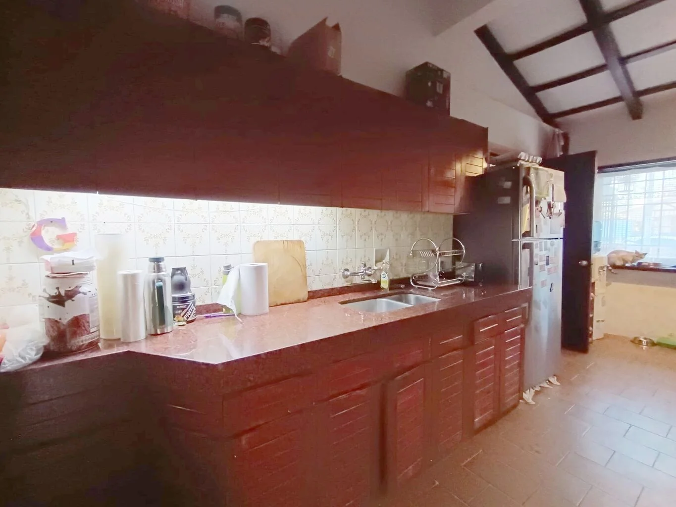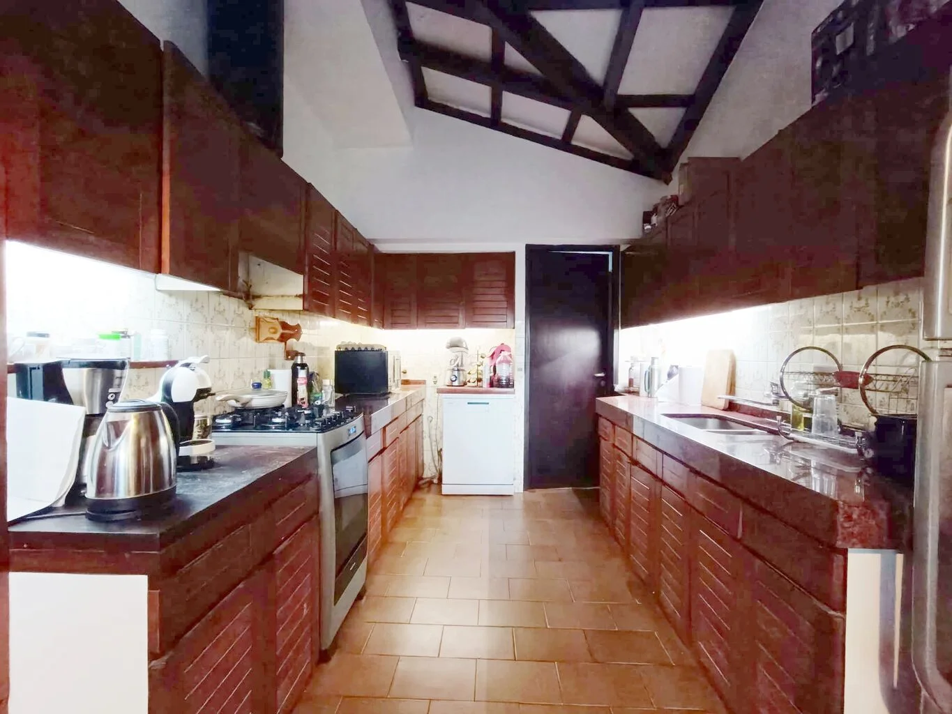 Cocina con doble mesada, placares aéreos y bajo mesada, muy buena carpintería, zona de lavandería.