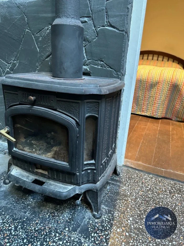 Living con iluminación natural, aire acondicionado más estufa a leña con vidrio de hierro fundido.