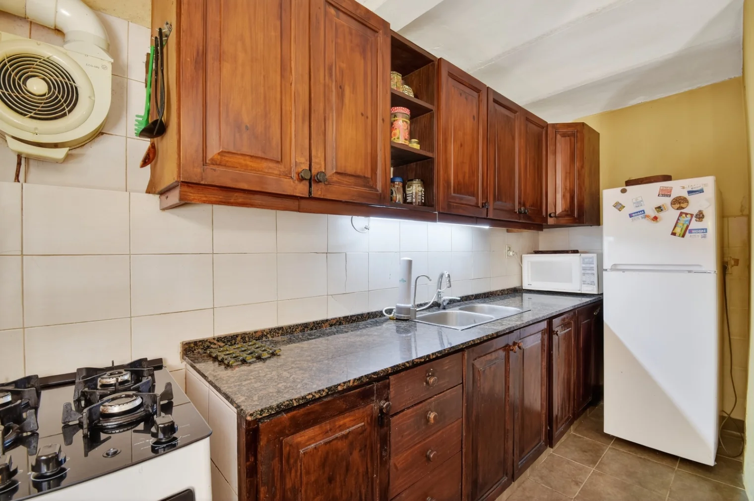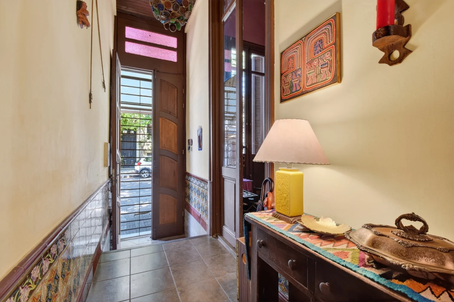 Aberturas originales de madera en buen estado, con rejas y postigones.