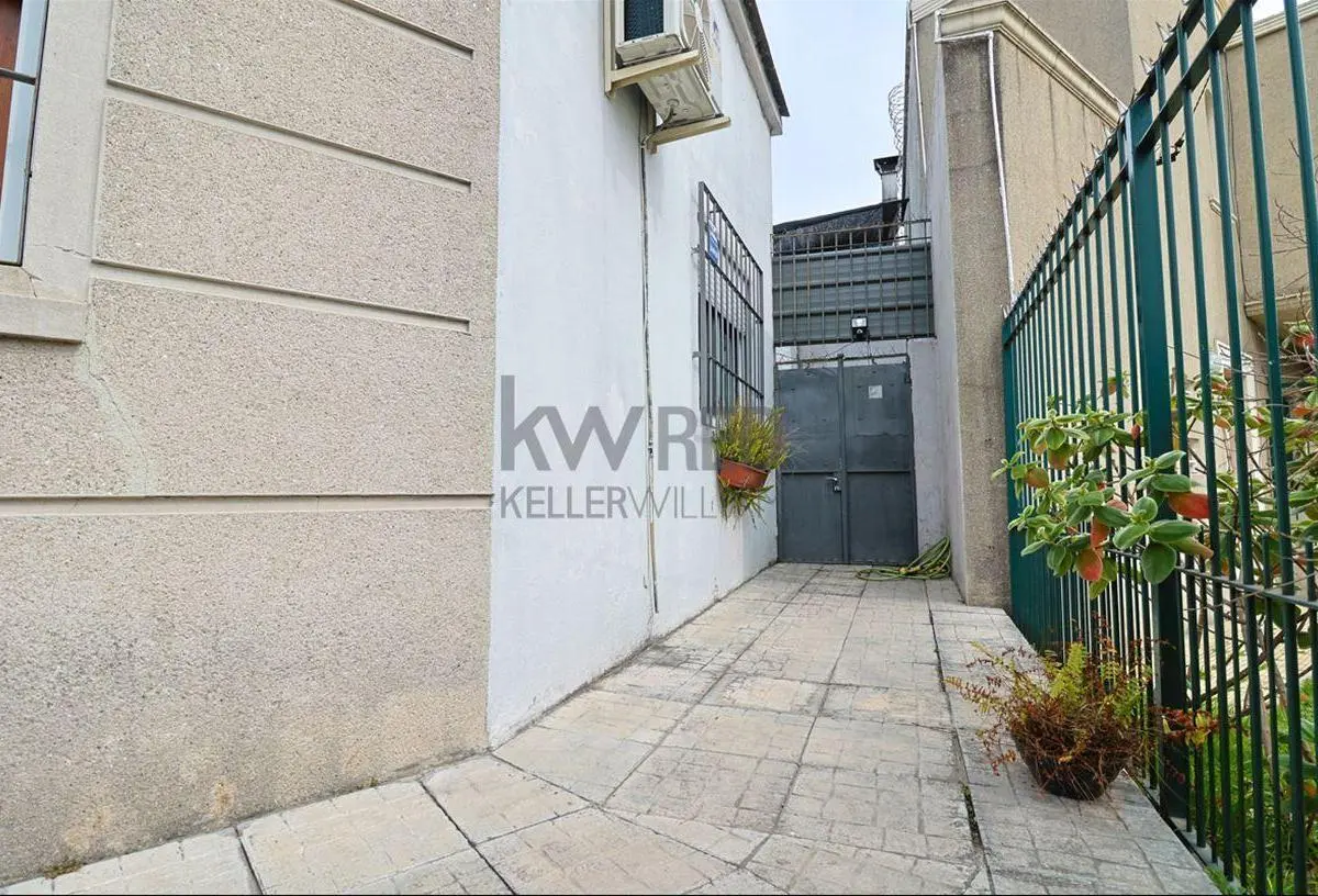 * Fachada con encanto: jardín cercado, entrada principal con puerta de madera y puerta cancel, más portón independiente para moto.