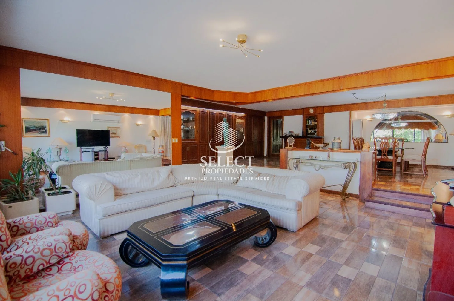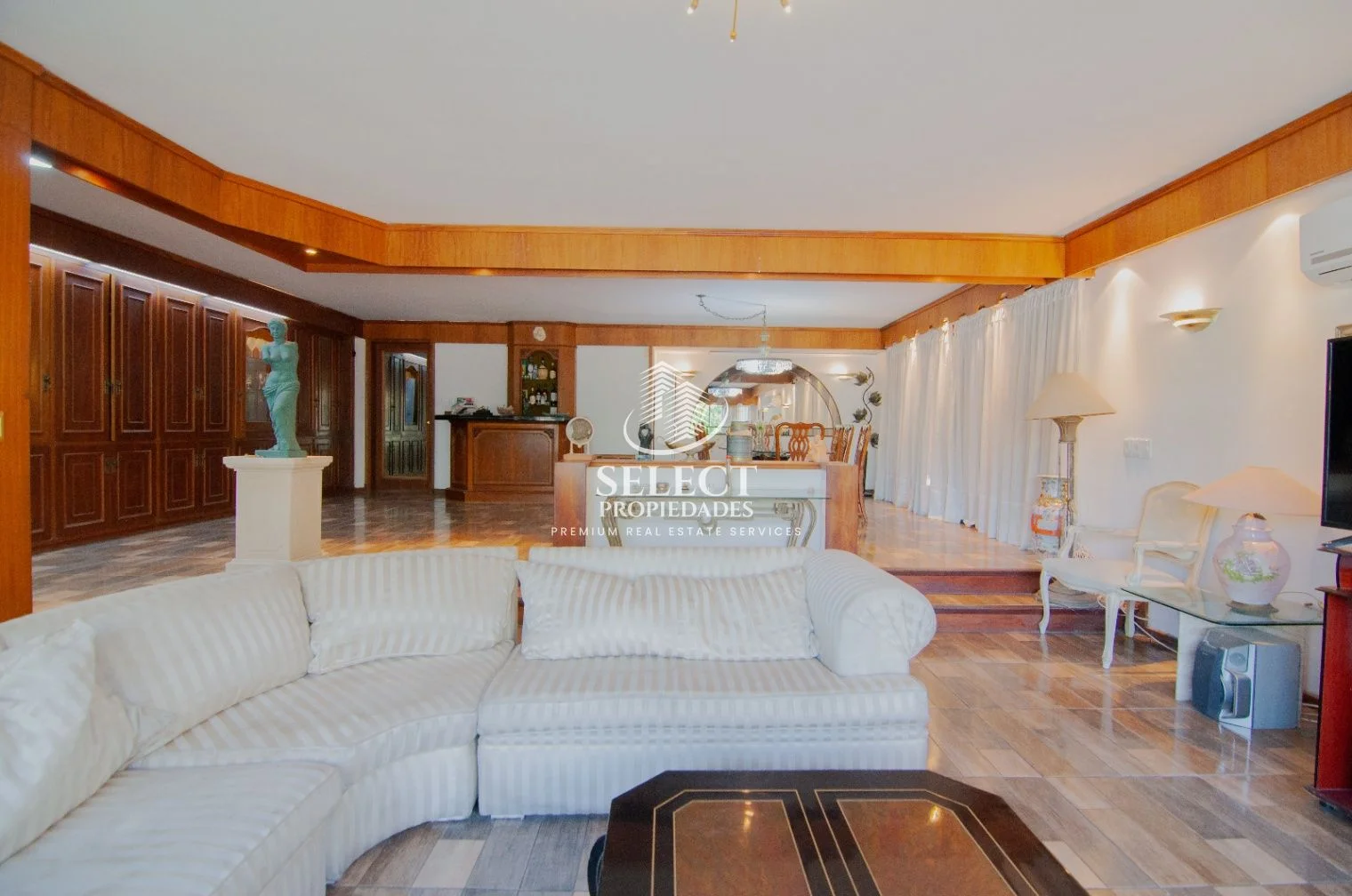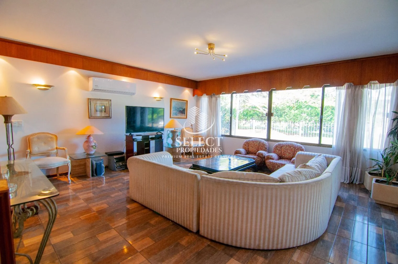 Ingresamos a muy amplio living con estar, con ventanales al frente.