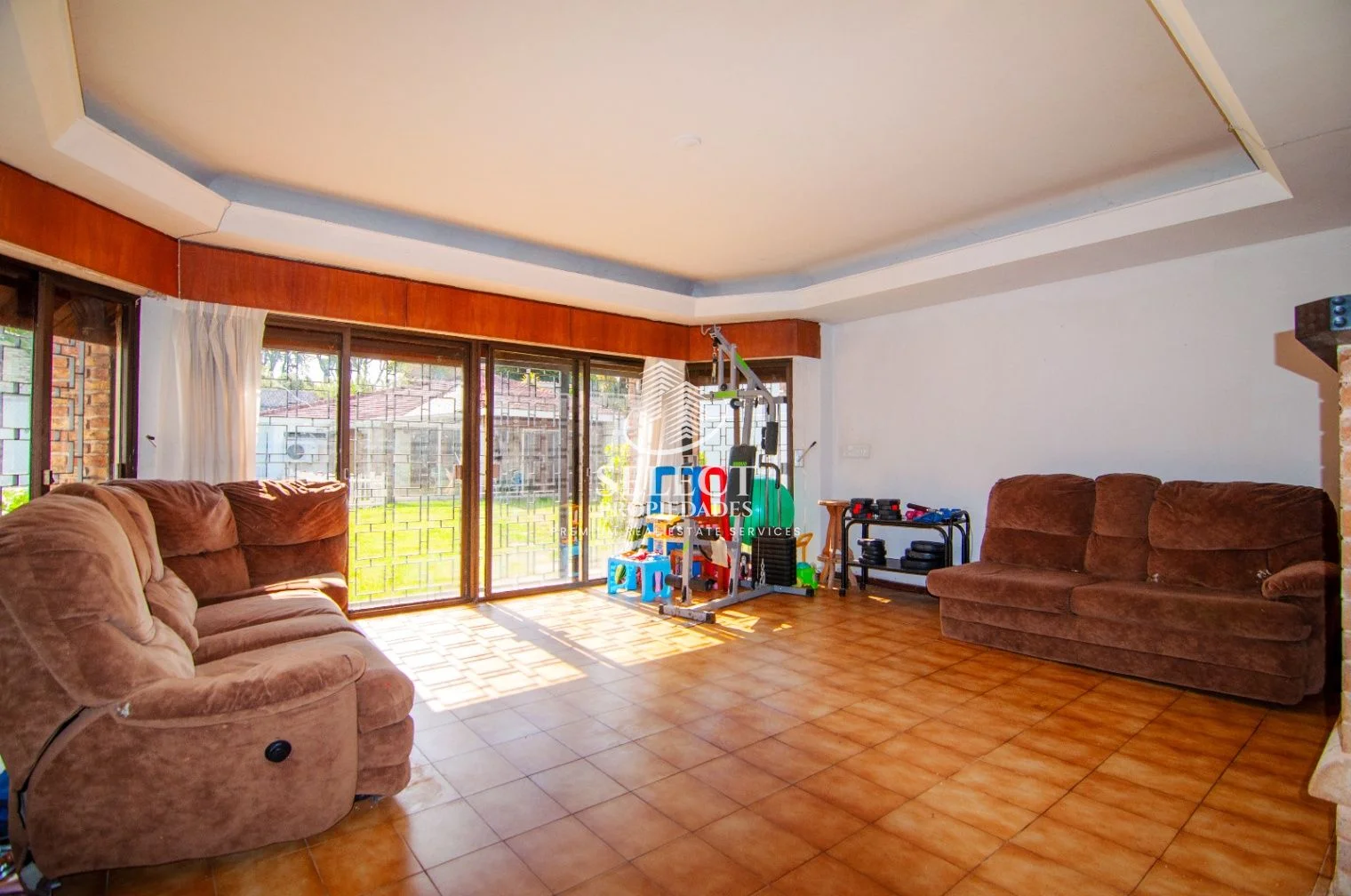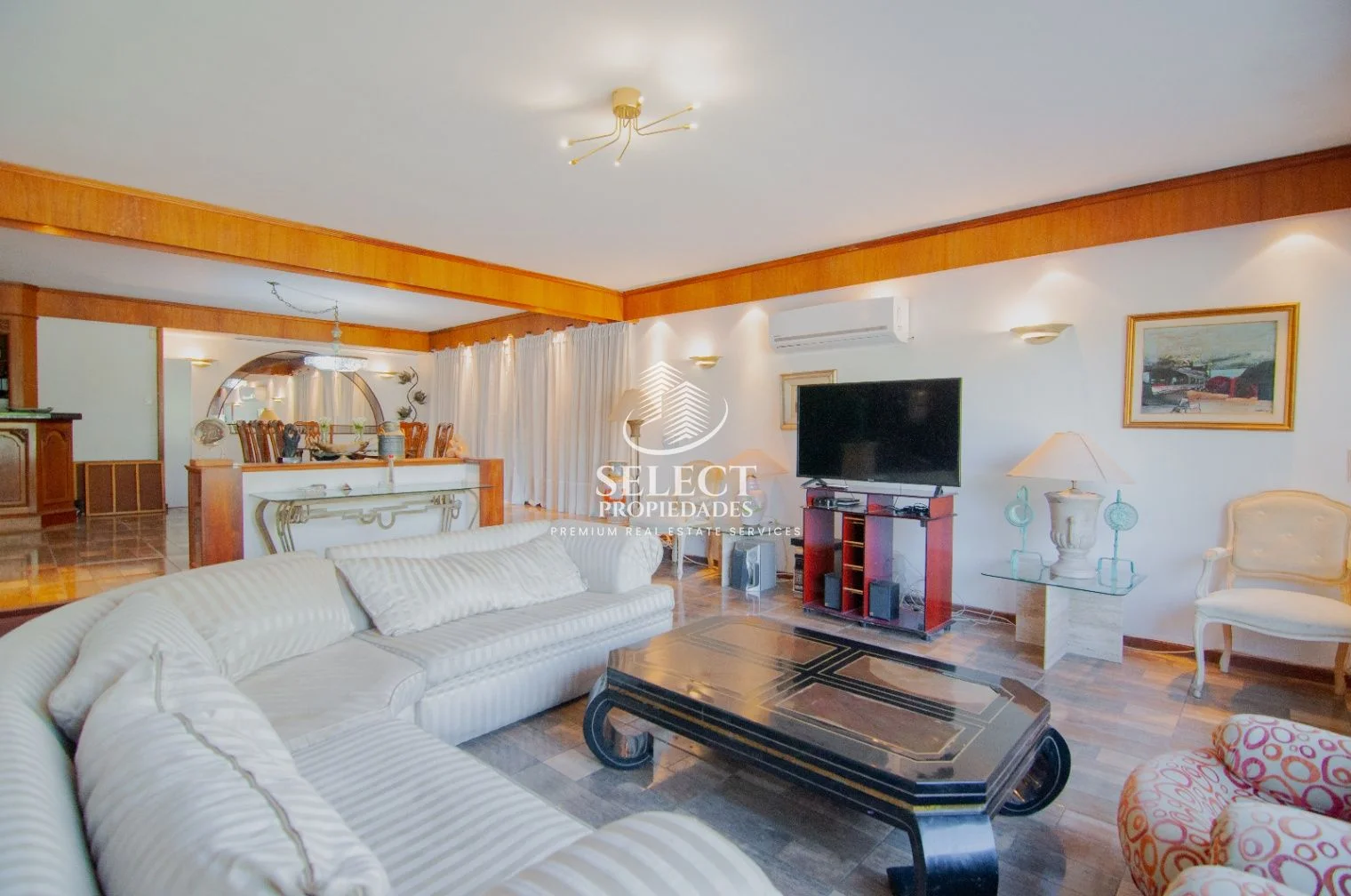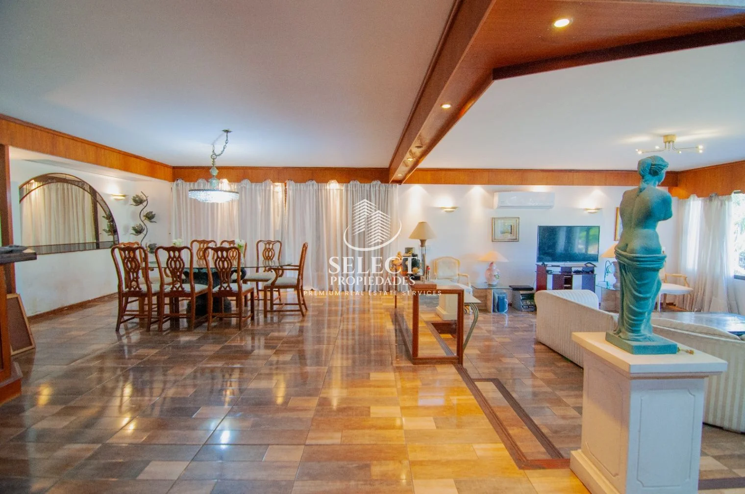 Ingresamos a muy amplio living con estar, con ventanales al frente.
