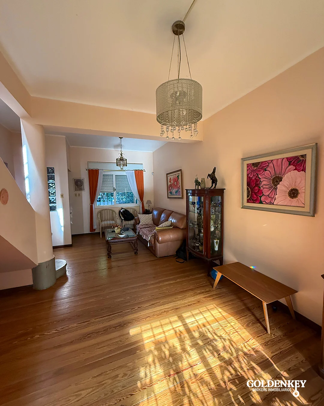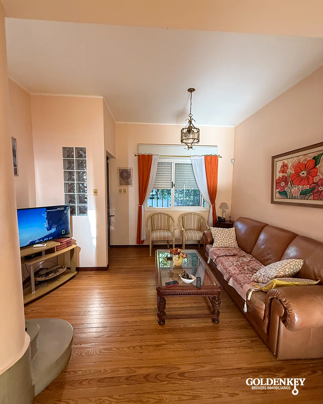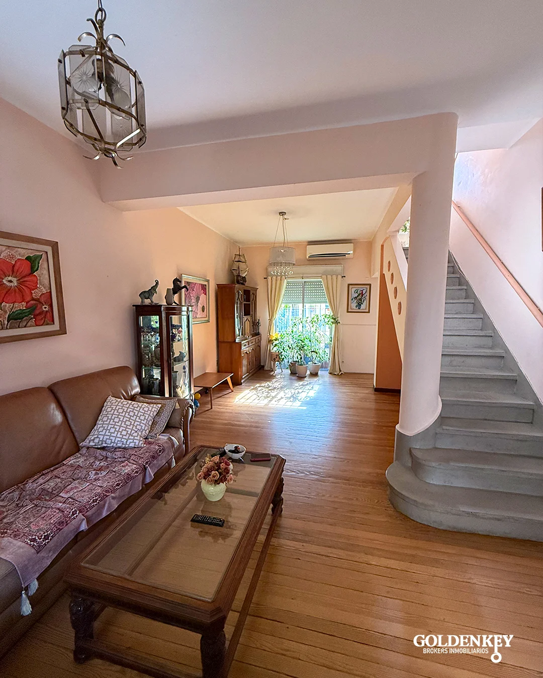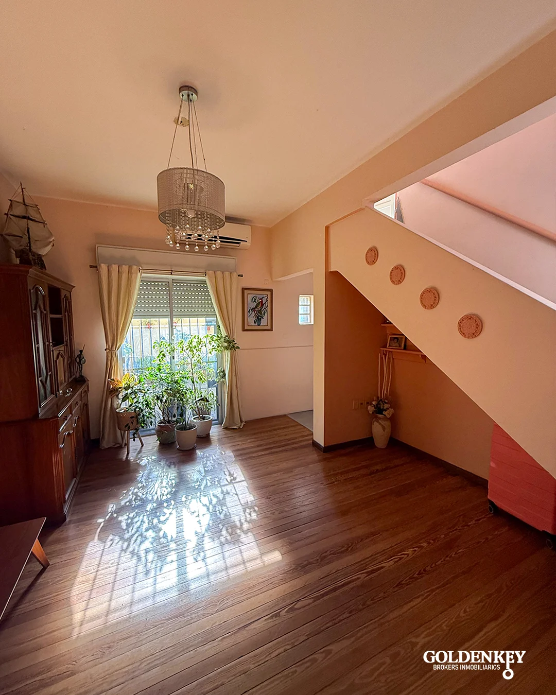 Living comedor amplio con piso de madera, ventana al frente muy luminoso y puerta ventana en aluminio hacia el patio, cuenta con aire acondicionado y baño social. Patio de 4 x 4 m.