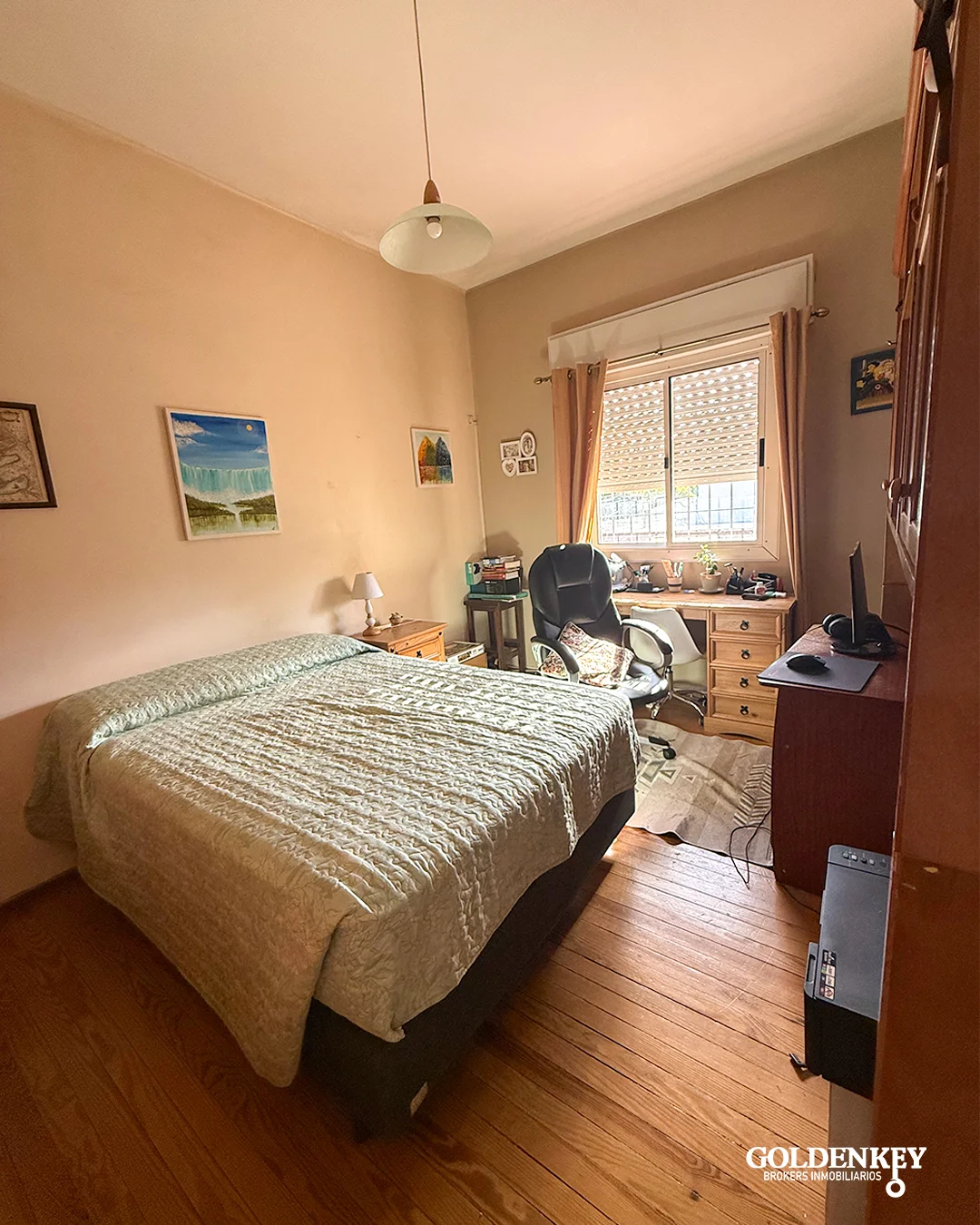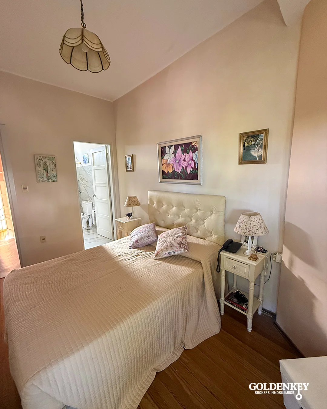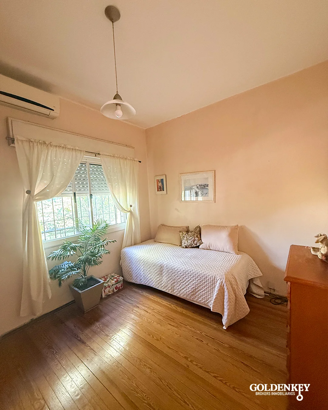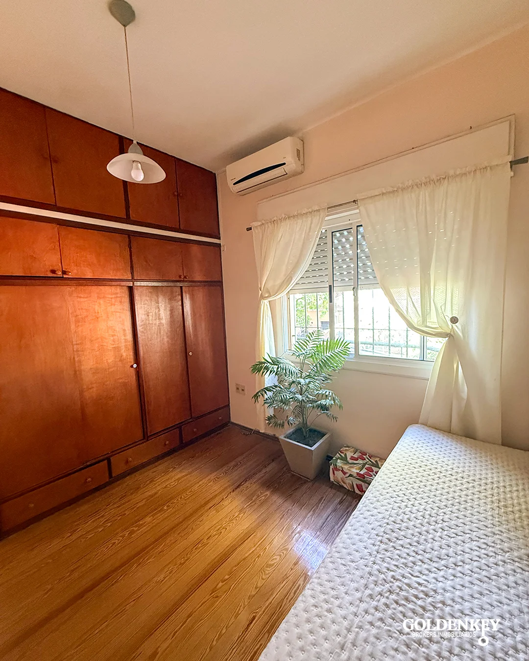 Dormitorio principal con baño en suite y salida a balcón al frente. Los otros 2 Dormitorios amplios también con piso en madera al igual que el principal y cuentan con aire acondicionado.