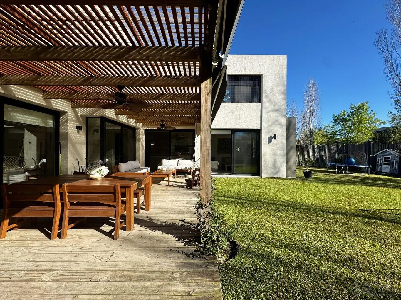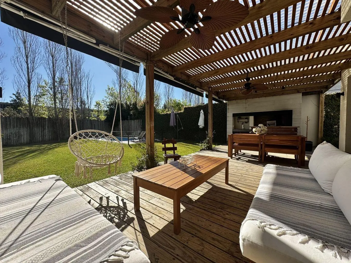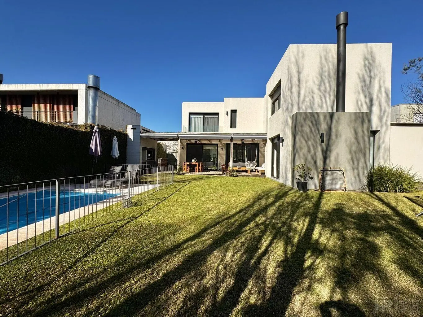 Gran galería con parillero, espectacular jardín y piscina climatizada con bomba de calor.