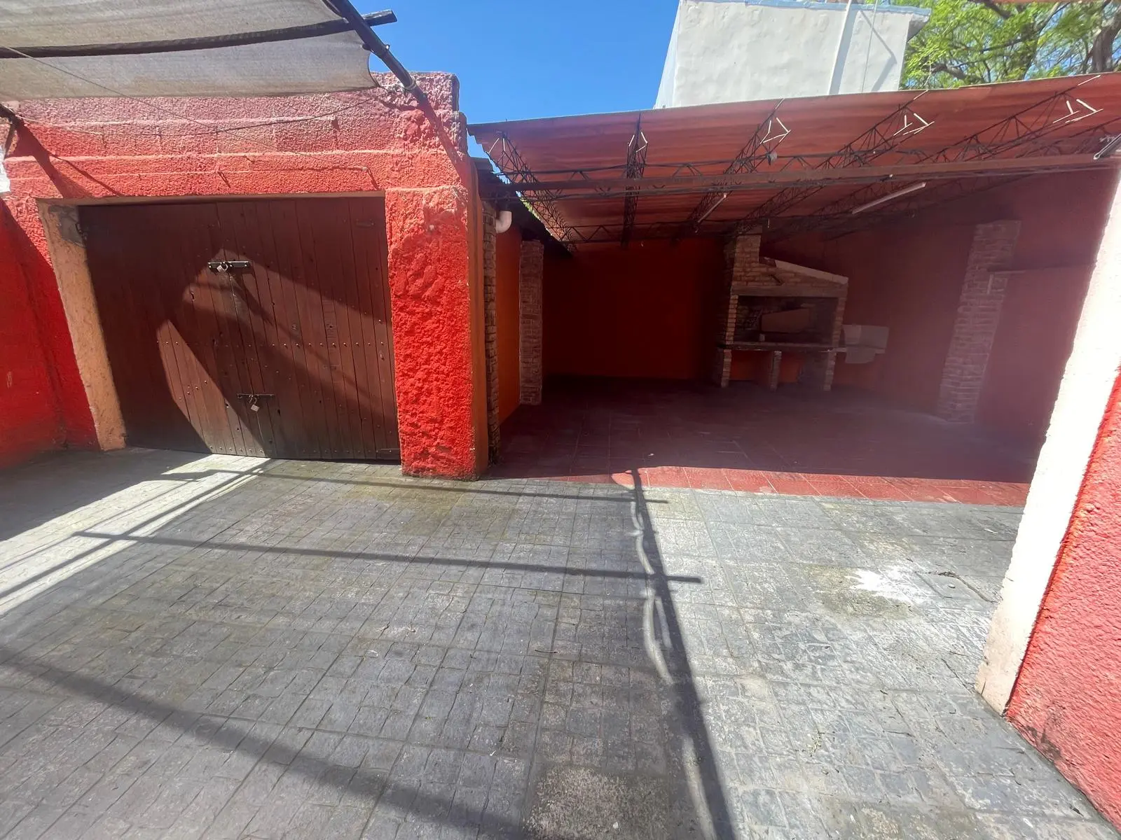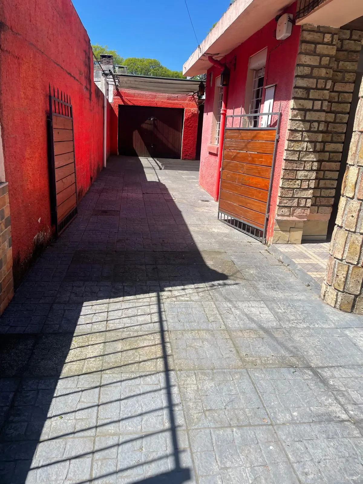 Amplio jardín con entrada lateral en la cual pueden guardarse hasta 3 vehículos y un garage cerrado .
