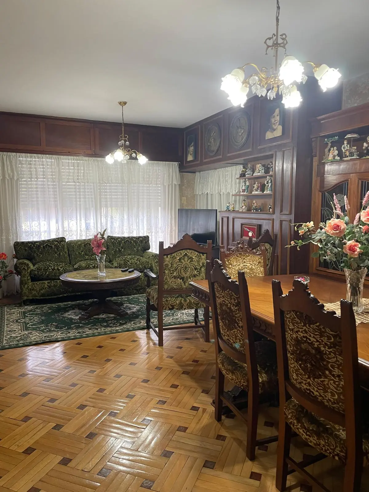 Casa de tejas de 1 planta. Lo que no hay en el mercado. Con la mejor orientación. Excelente construcción, pisos de parquet y aberturas de cedro. Gran living comedor con hogar y escritorio o consultorio al frente. 3 dormitorios matrimoniales con placares. 2 baños completos. Cocina con profusión de placares y estar con salida al fondo. Fondo verde a nivel de la casa. Garaje para 2 autos y entrada lateral de servicio. Barbacoa de 60 mtrs. Planta alta: dormitorio de servicio. Área total de terreno 456 con 12 mtrs de frente. Área construida 260 mtrs.