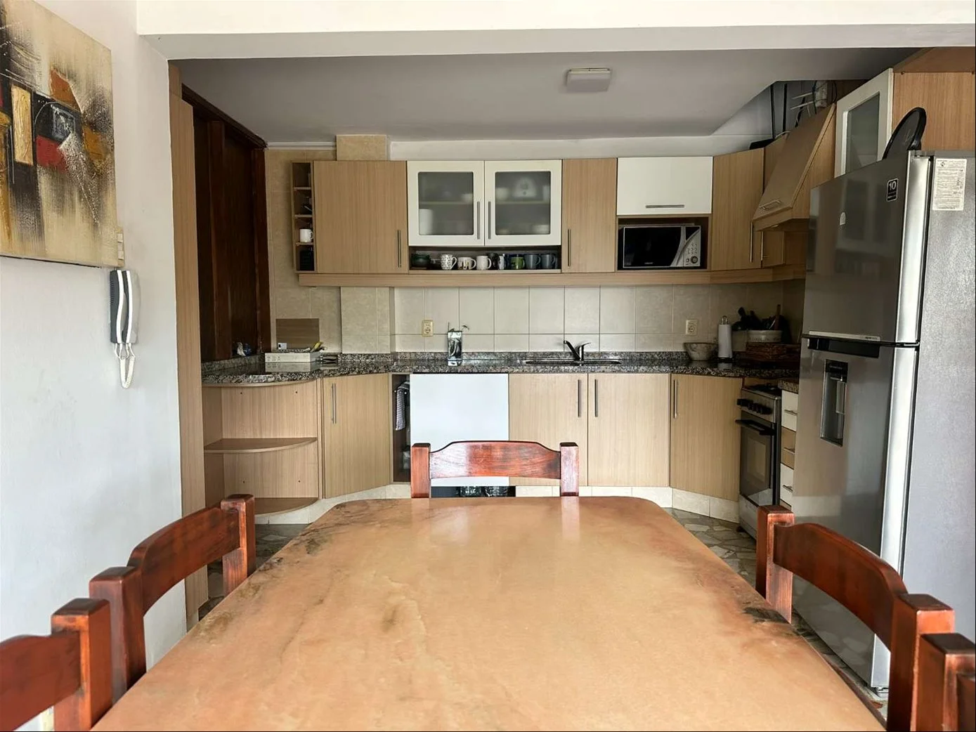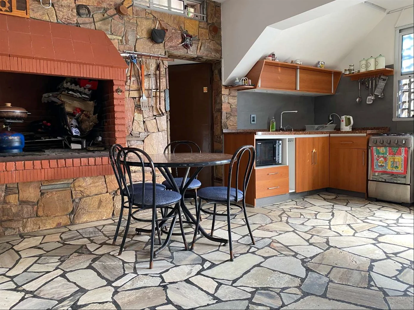 Planta Alta: cuenta con un apartamento con doble acceso, uno totalmente independiente de la casa y otro desde la misma casa, esta área tiene un living comedor y cocina integrada con gran ingreso de luz, dos dormitorios (uno se usa como vestidor) y baño completo. En la misma planta, barbacoa con parrillero y cocina, y zona de lavadero