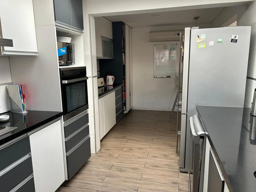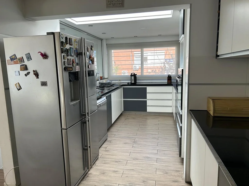 Amplia cocina de estilo americano con doble mesada y buenos placares