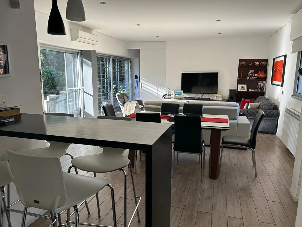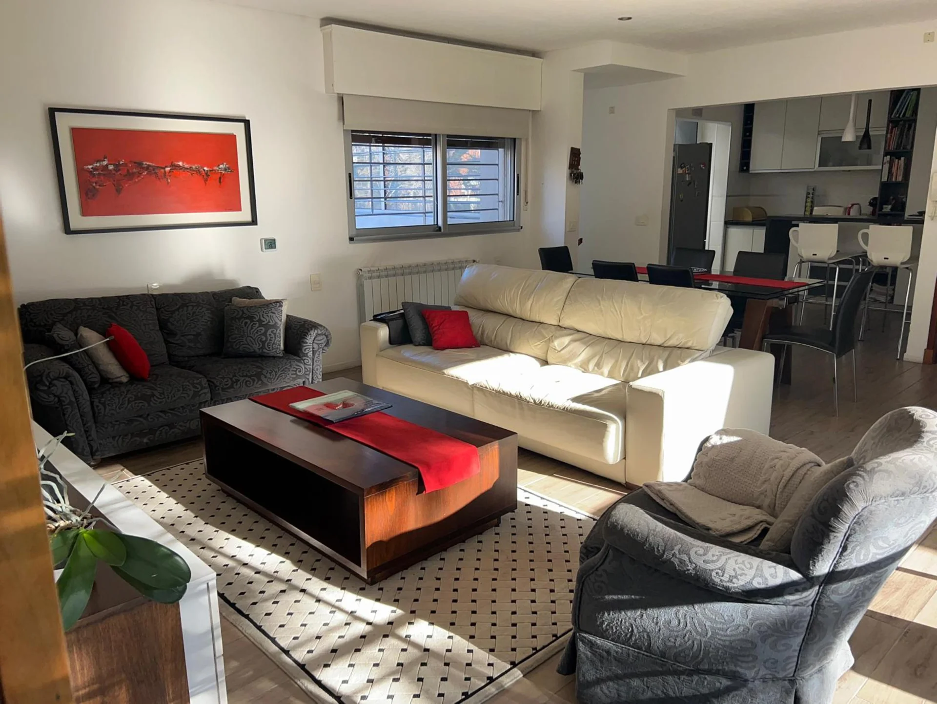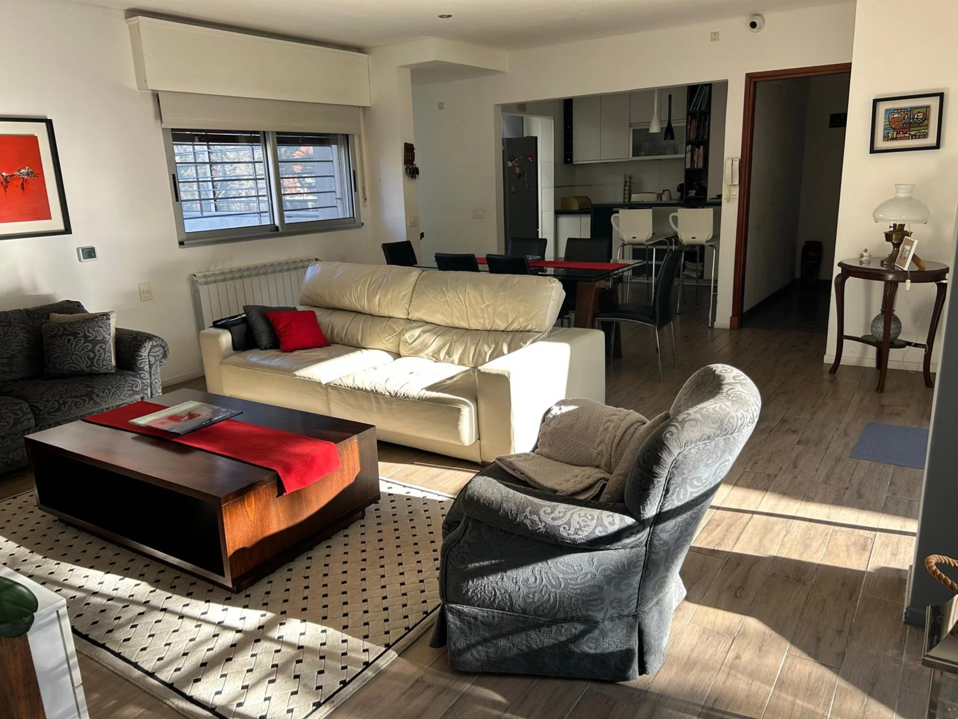Gran estar y comedor, con salida al fondo por gran ventanal con doble ventana, conectado con barra a la cocina