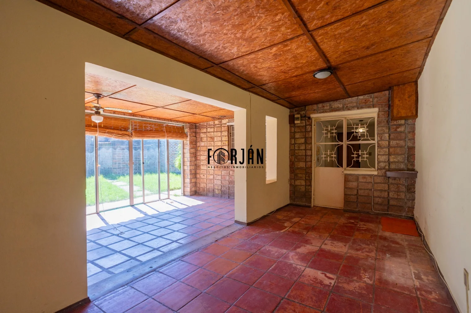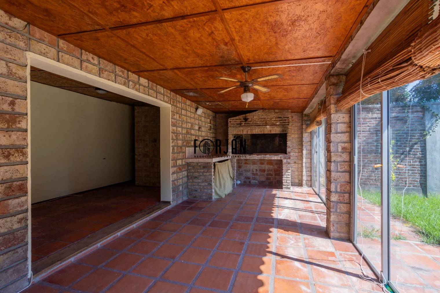 Barbacoa cerrada amplia y luminosa, con grandes aberturas que dan luminosidad natural a la habitación, brindando salida hacia el patio cerrado de uso exclusivo de la casa, con gran espacio verde, árboles frutales, habitación para herramientas y baño social.