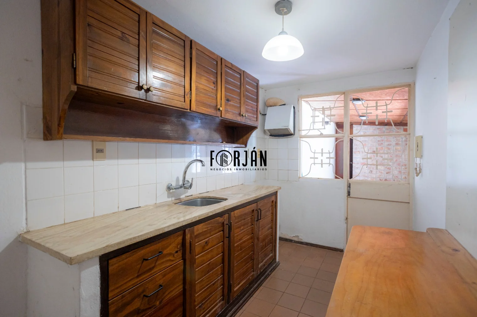 La propiedad es de dos plantas, cuenta en su primer piso con living comedor de uso diario, luminoso, con rejas en sus aberturas, cocina con muebles sobre y bajo mesada.