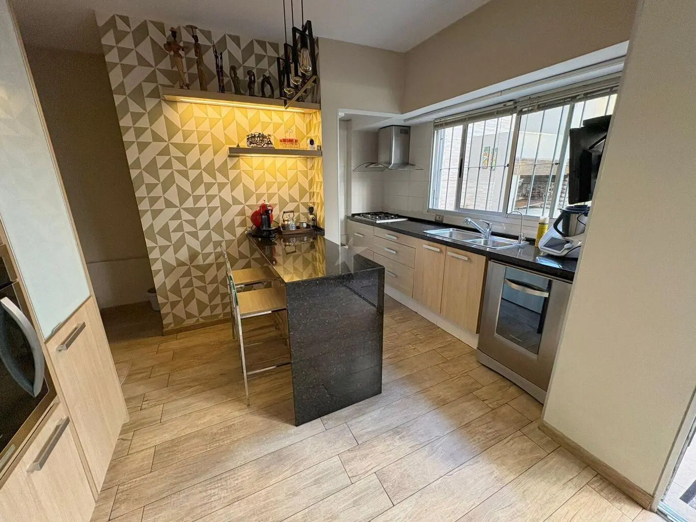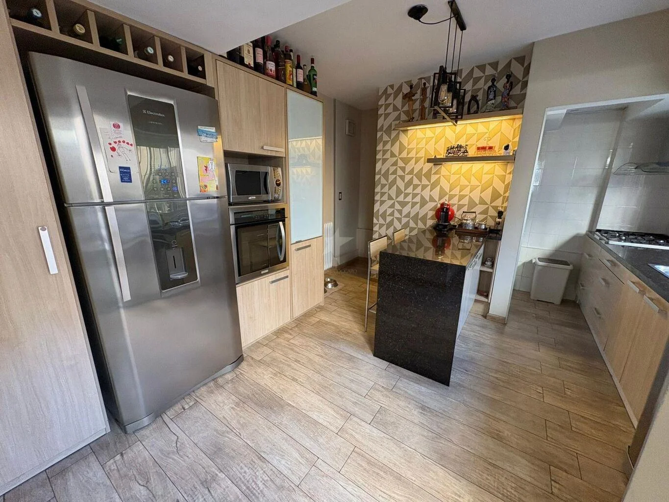 Cocina abierta con comedor diario y estar, toda equipada con anafe, campana y horno. Toilette.