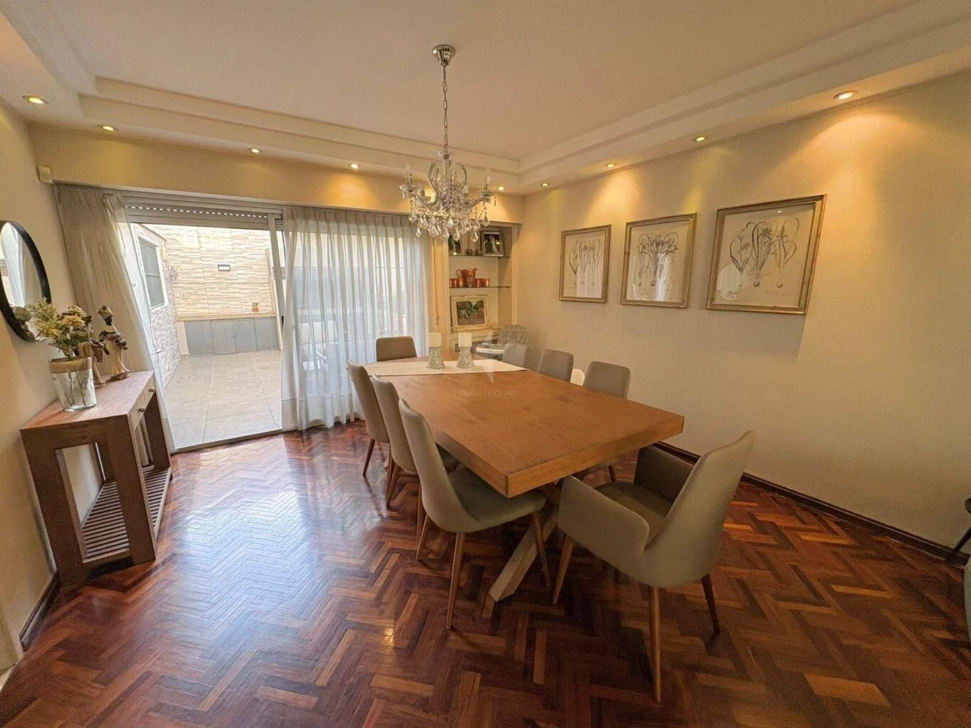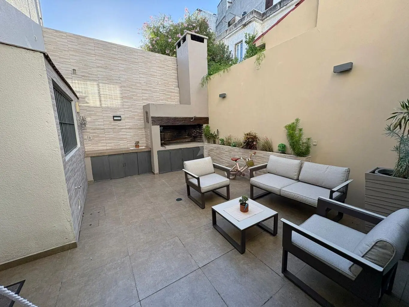 Amplio living comedor con salida a disfrutable patio con parrillero.