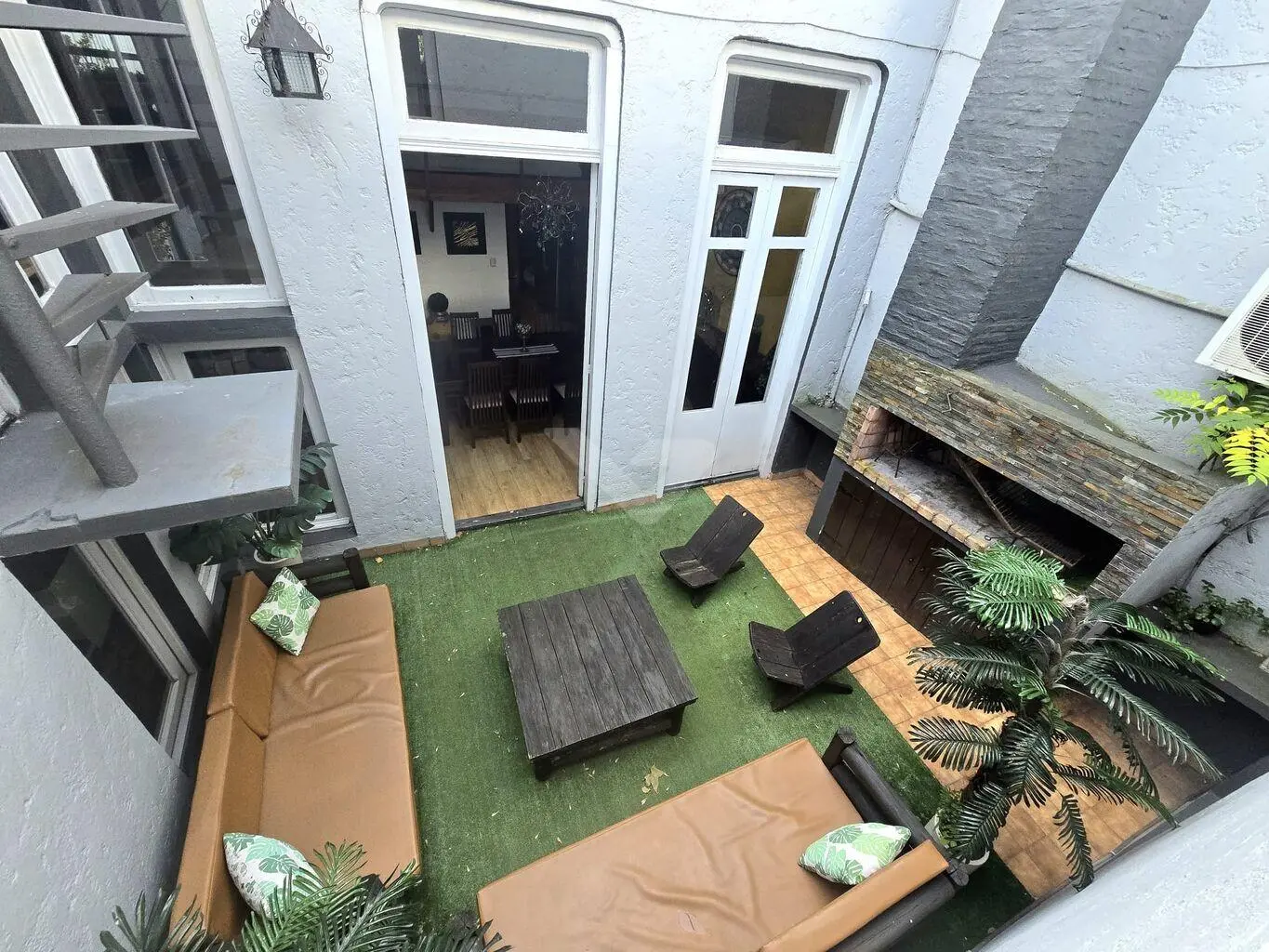 - Patio interno central con parrillero: perfecto para disfrutar asados y reuniones al aire libre.