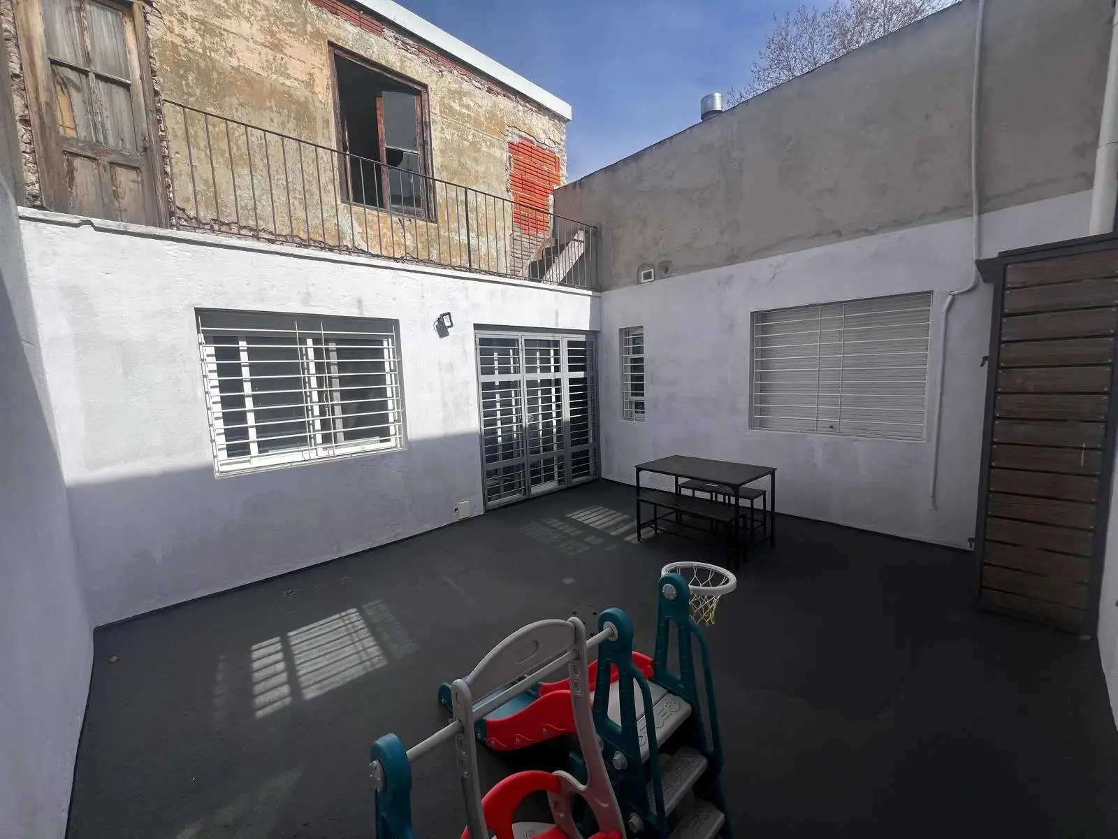 Gran frente con espacio de tierra y verde, cómodo patio al fondo y azotea transitable con una pieza a terminar como posible barbacoa o espacio extra (ya tiene prevista cañería para un baño).