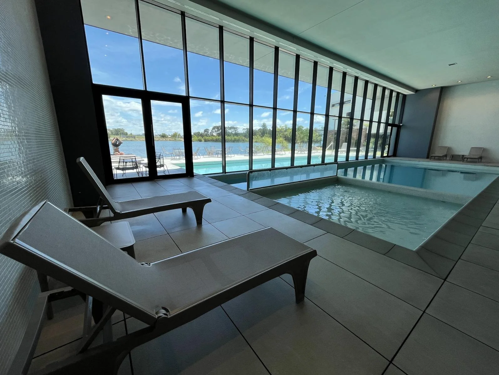 Construido a orillas de un lago de 8 hectáreas, ideal para los deportes acuáticos, paseos en kayak o simplemente para disfrutar el marco natural, ya sea en un paseo por sus orillas o desde los apartamentos con vistas 360.