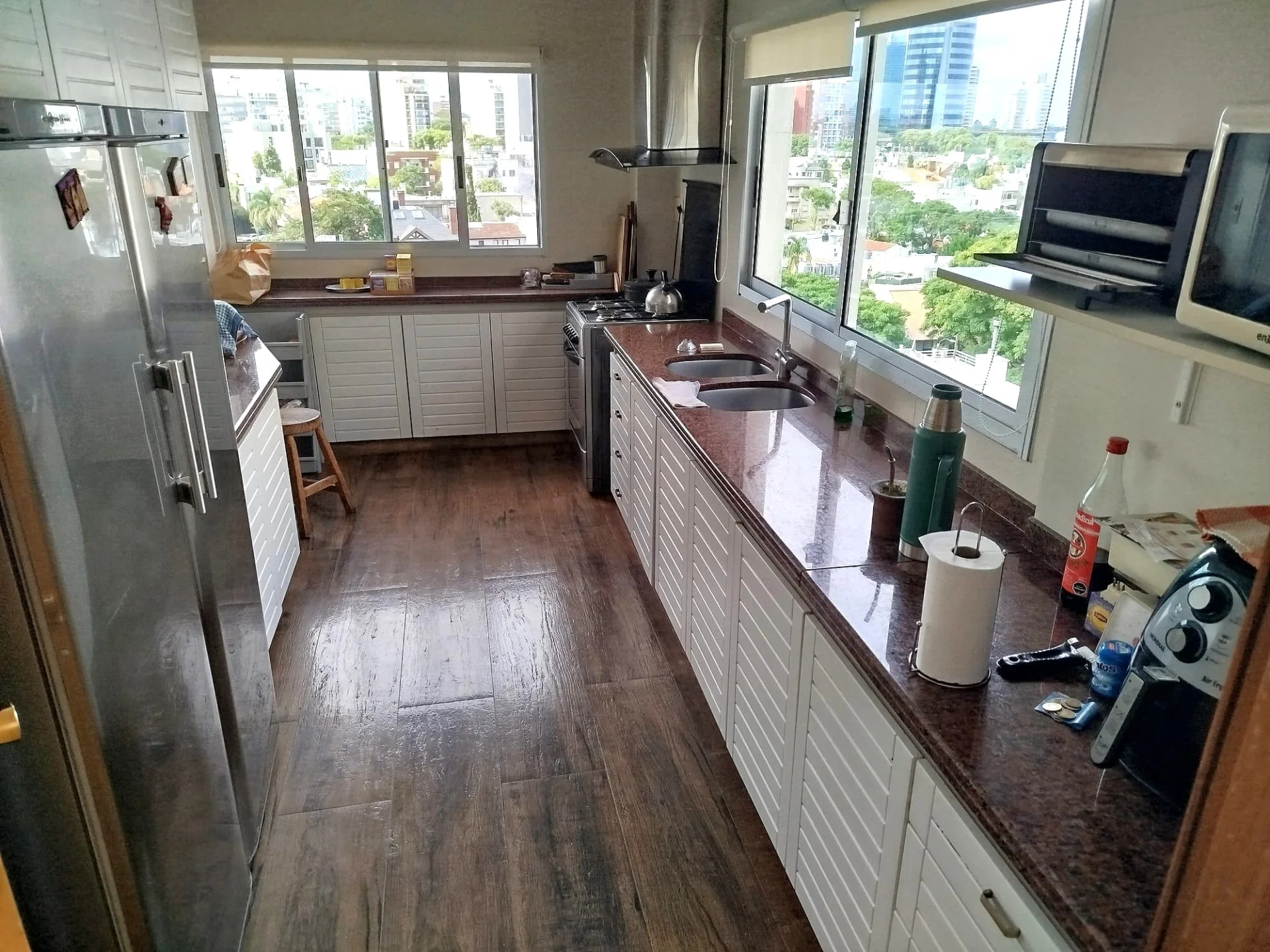 COCINA DEFINIDA CON TRIPLE MESADA Y PROFUSION DE PLACARES, PULMON DE MANZANA TOTALMENTE DESPEJADO.