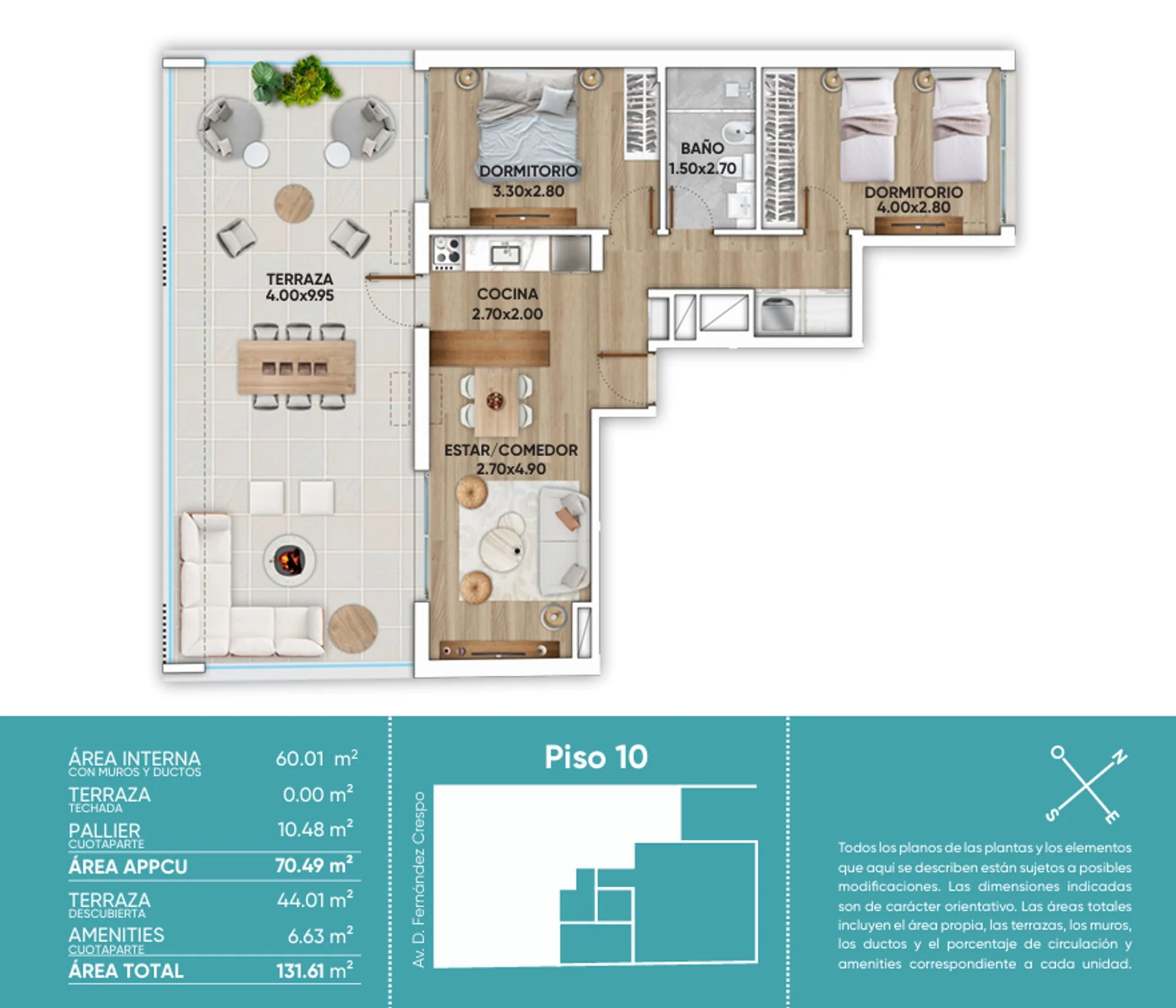 Corredor Responsable: - Contacto: Valeria Cruz Ubicado en Cordón, sobre Fernández Crespo entre Uruguay y Paysandú a 2 cuadras de 18 de Julio. Estrena Junio 2026 Increible apto Penthouse de 2 dormitorios con terraza enorme de 45m2. El apto se entrega con anafe, horno, campana, calefón y 3 aires acondicionados Es proyecto moderno y funcional de construcción tradicional pensado tanto para vivir como inversión. Amenities: Espacio común tipo SUM / cowork con parrillero interior, barra, estar y doble terraza solárium panorámica Laundry Precio correspondiente a la unidad Penthouse en piso 10 con una terraza espectacular de 40m2 orientada al Norte U$S 201.000 Garajes opcional USD17.500 Gastos de ocupación 4,5% Además, el proyecto se desarrolla al amparo de la Ley de Vivienda Promovida (Ley 18.795), lo que brinda importantes beneficios fiscales para inversores: Exoneración del ITP Exoneración del IRAE/IRPF sobre alquileres por 10 años Exoneración del Impuesto al Patrimonio por 10 años Cada Oficina es de propiedad, gestión y desarrollo independiente La presente publicación describe las características esenciales del inmueble, debiéndose consultar al responsable de la operación por la eventual actualización de las medidas, descripciones arquitectónicas y funcionales, servicios, impuestos, precios y demás información, cuyos valores son aproximados.