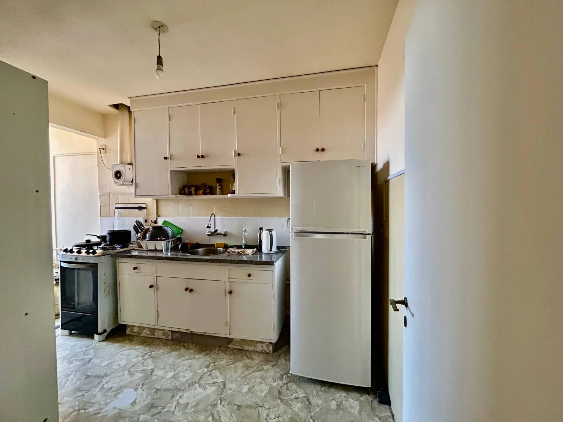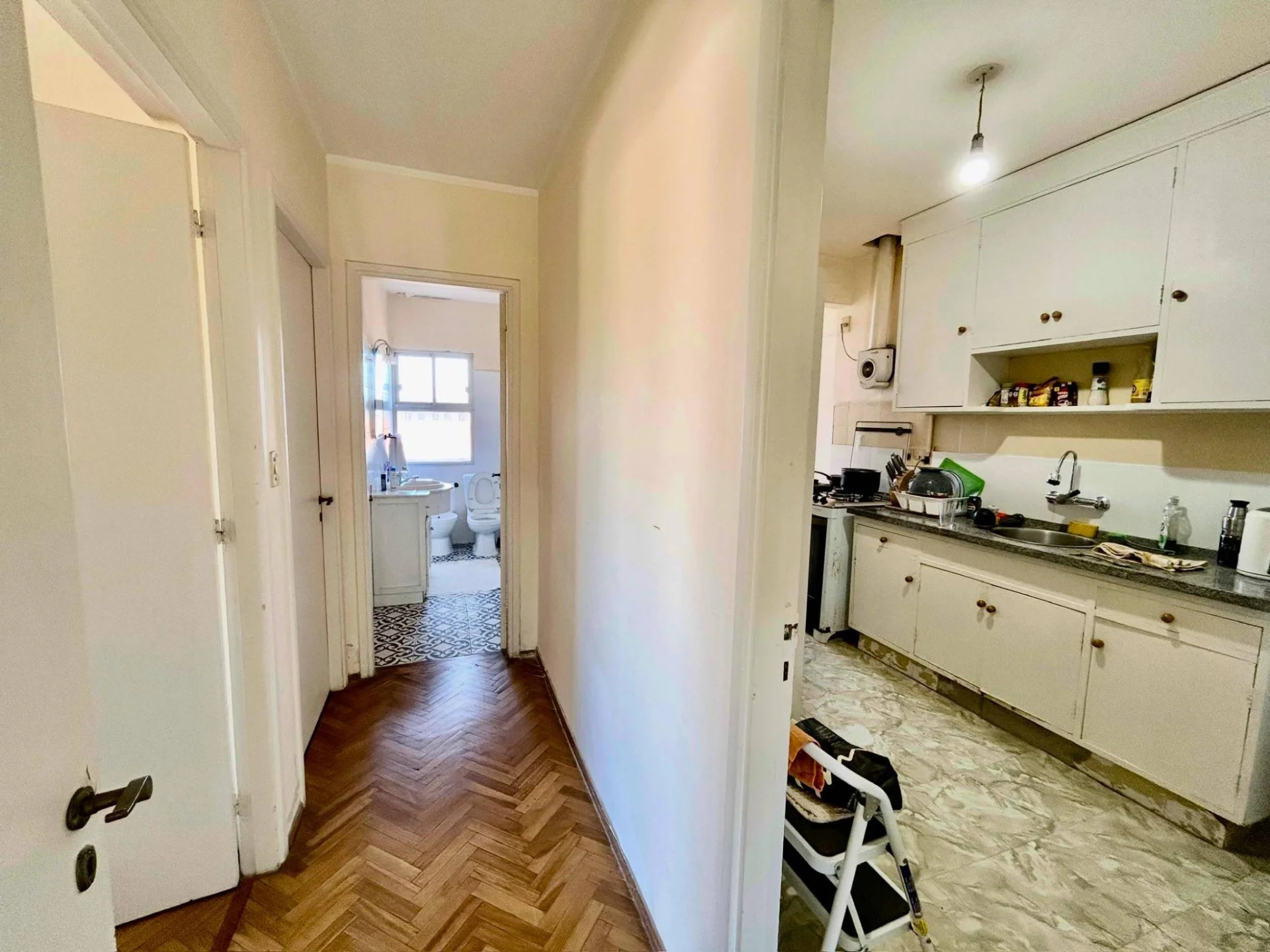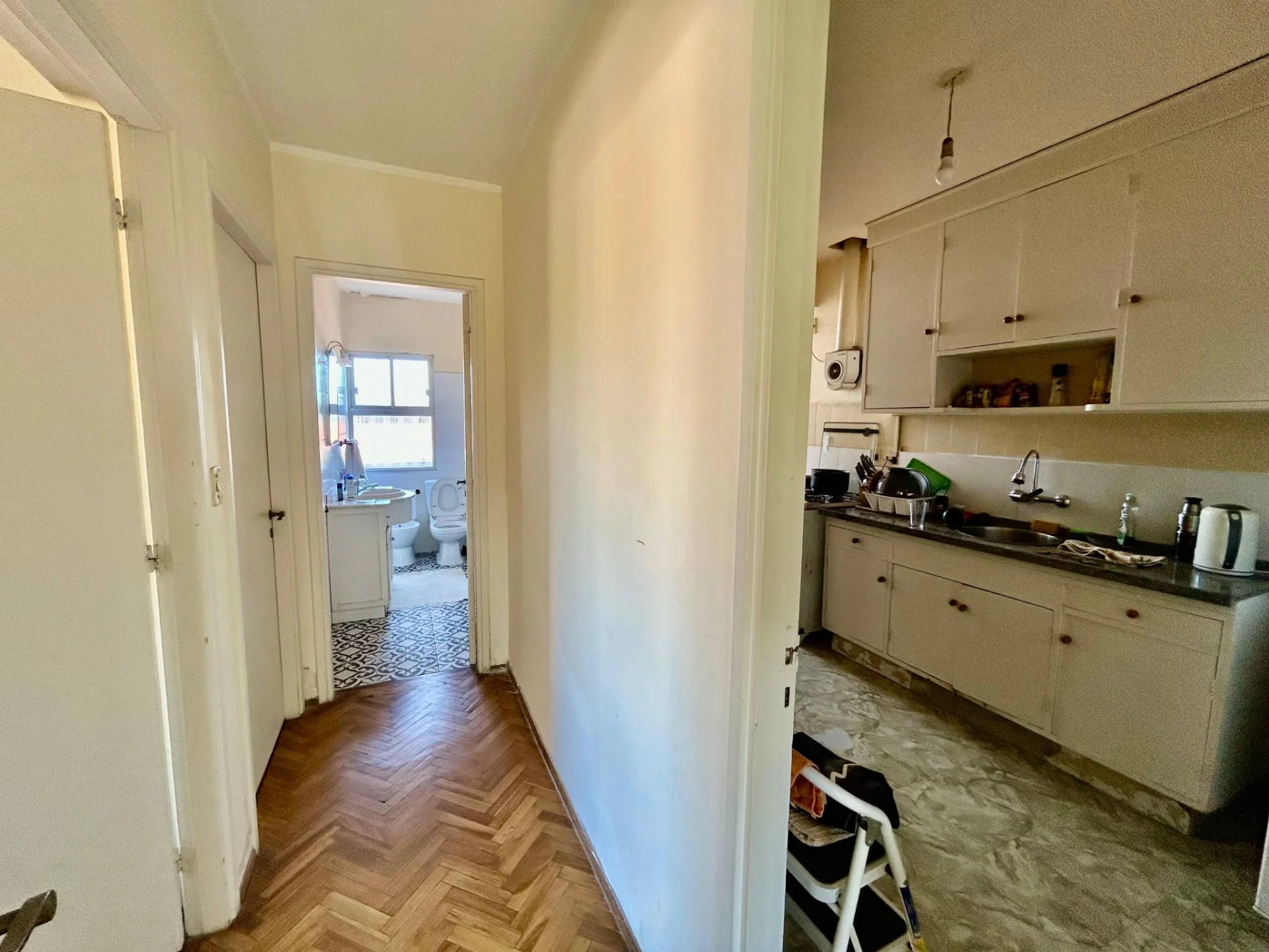 Cocina definida con sector lavadero y baño completo.