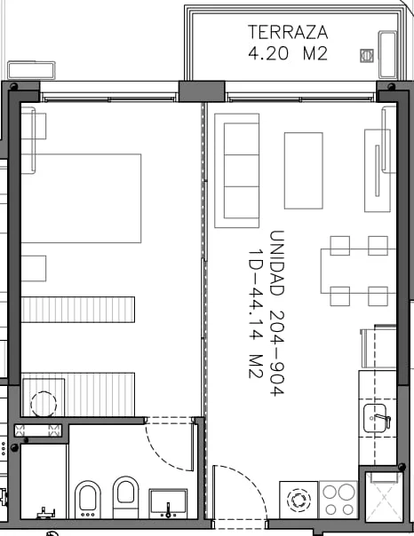 Segundo piso al contrafrente, living comedor con salida al balcón. Cocina integrada.
