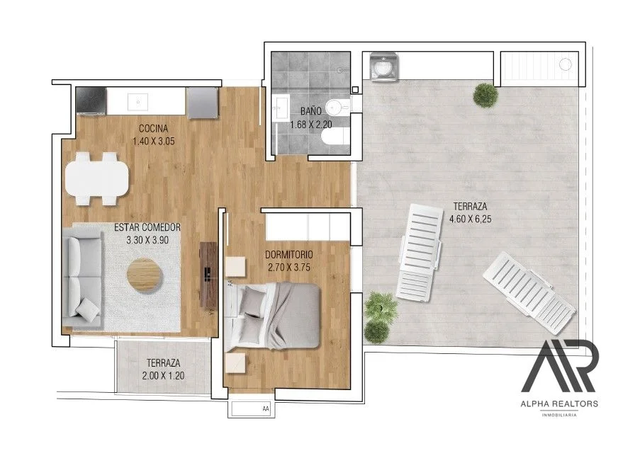El apartamento cuenta con estar comedor con cocina integrada, un dormitorio, un baño completo y un cómodo patio con parrillero para pasar los mejores momentos! Desde el estar también se accede a la terraza al frente!